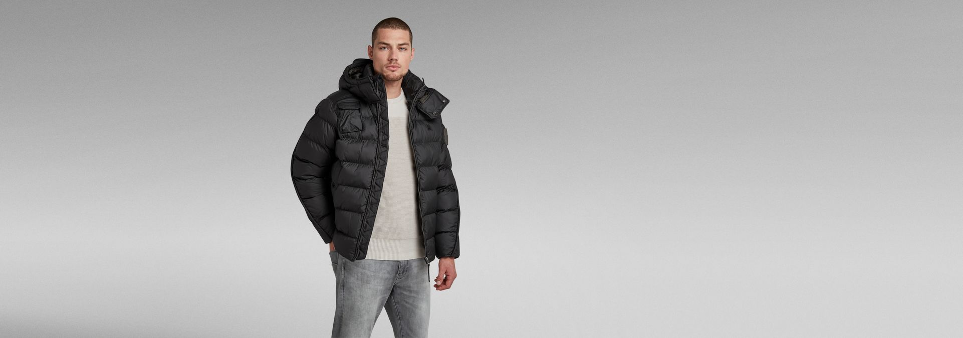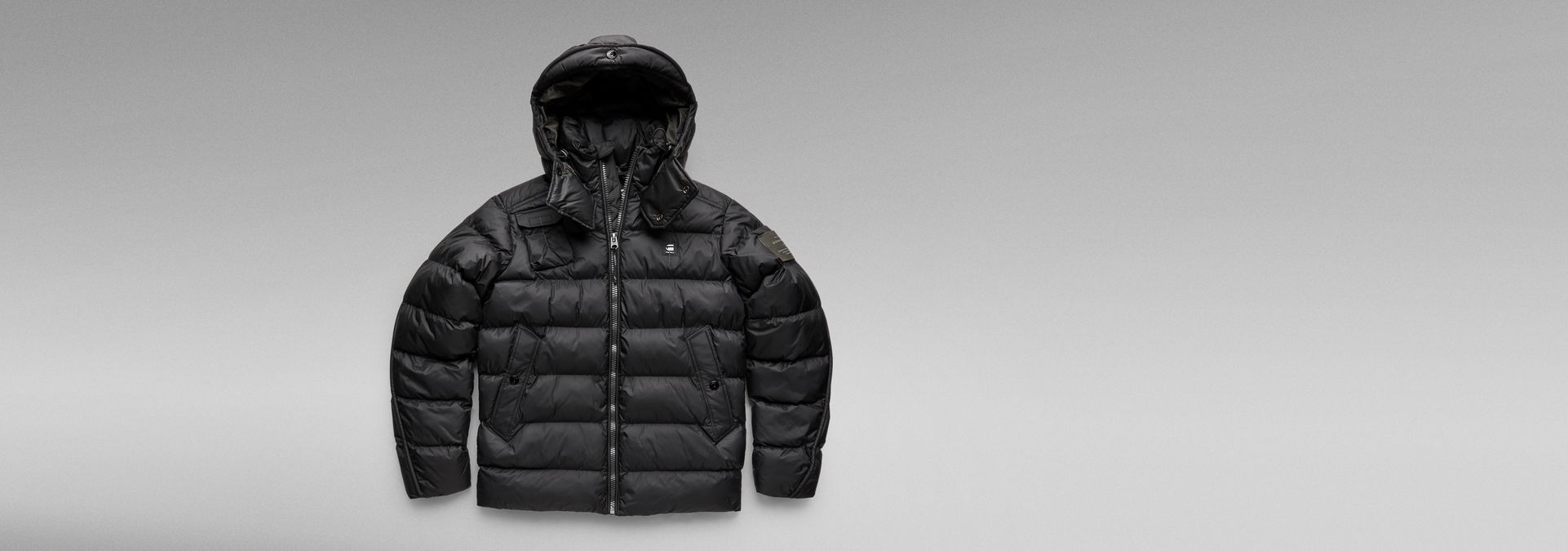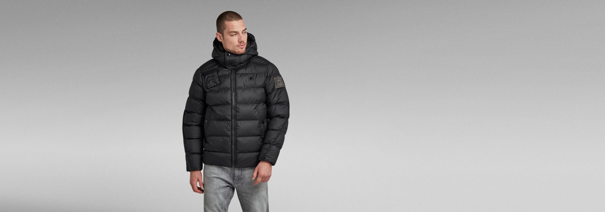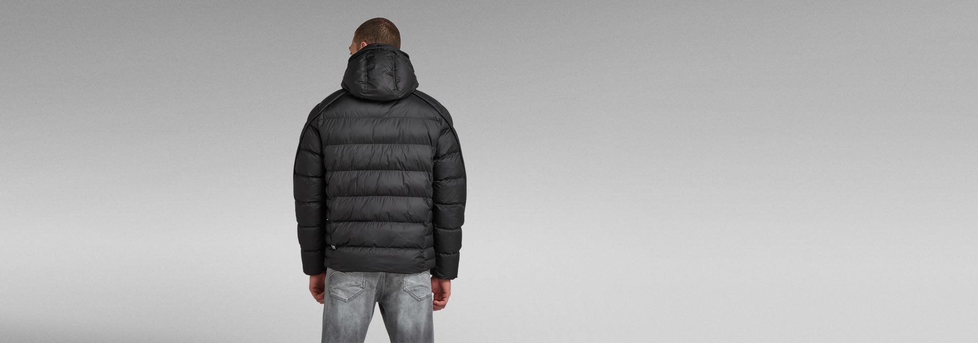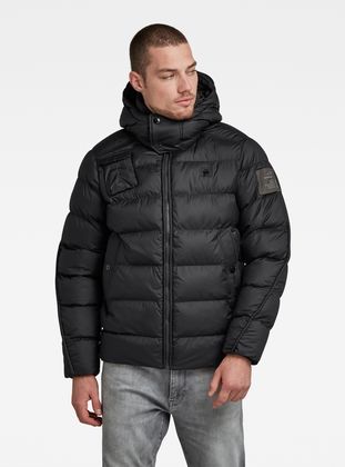 This G-Whistler hooded padded jacket is cut from a water repellent fabric, quilted in a horizontal stitch down. The detachable peak hood is constructed with a high raised front and offers pull cords inside for optimum protection. The peak can be fixated if preferred. Also the straight hem is adjustable, as there is a puller cord hidden inside. A slim piping runs alongside the sleeves. This padded jacket offers pockets at the front shoulder, waist and inside and is finished with a heat press lining, featuring a subtle print on the inside.