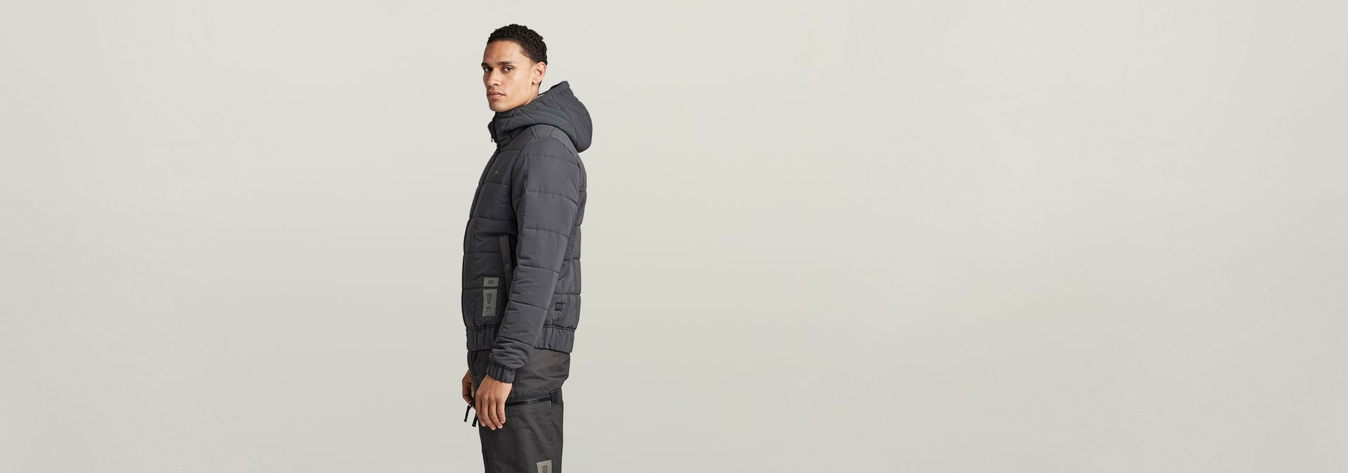 This Meefic square quilted jacket is cut from a reflective fabric, stitched through in a grid structure. The hood shows a high raised front and offers concealed tapes at the inside for optimum protection. A broad woven tape indicates the pocket entrance at the waist and offers a snap button closure. The elasticated sleeves ends and bottom edge complete this quilted jacket.