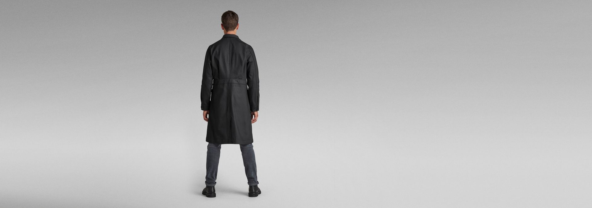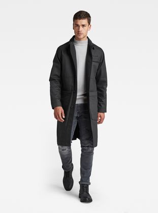 Deep, patched on waist pockets characterize this denim trench, offering a comfortable touch by the woolen lining inside. This knee length jacket offers a full button closure and a flat collar. Leaving the top button open, a lapel collar appears. This denim coat shows a flap pocket at the chest with a hidden snap closure. A stitched through loop is set just above. An inner pocket is added to the other side and is visible through the stitch down at the front. The adjustable long sleeves and added loop hanger, completes this Patched Pocket trench.