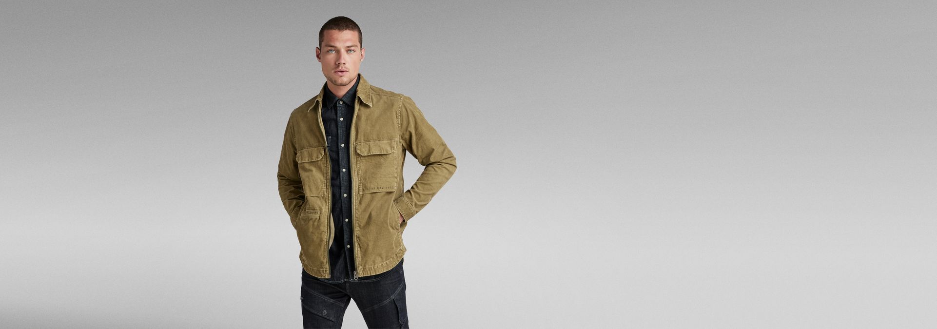 - Chest pockets with flap- hidden snap closure, slim welt pocket set below