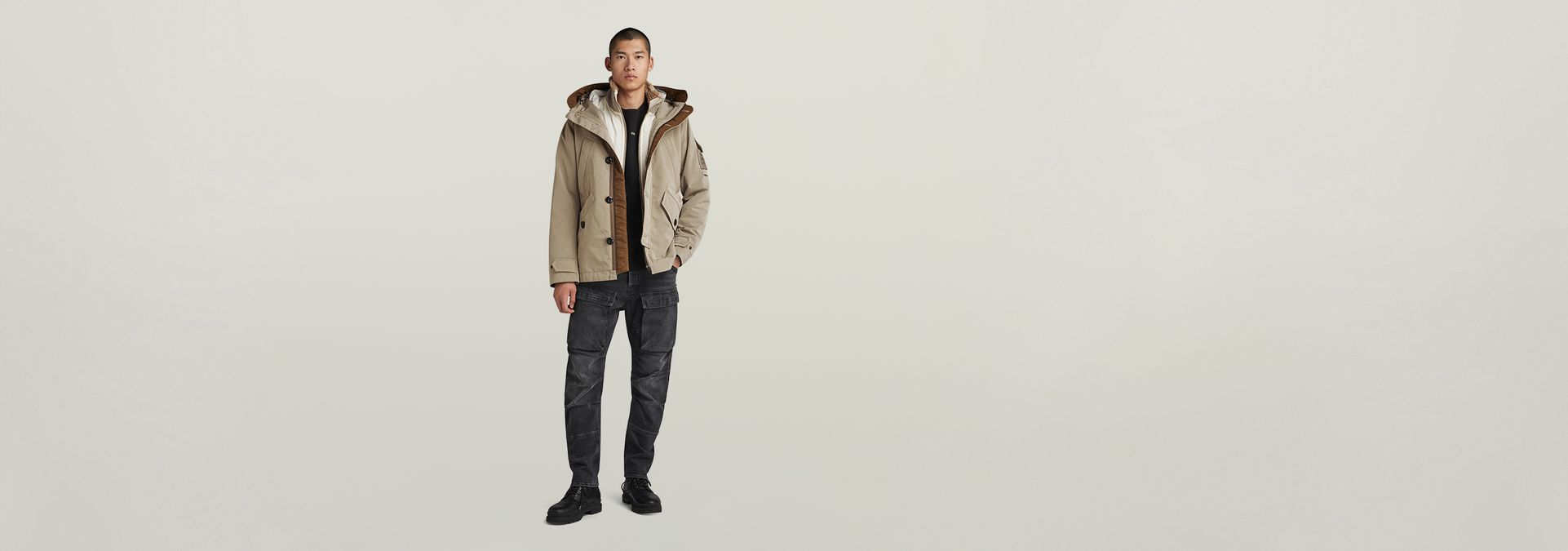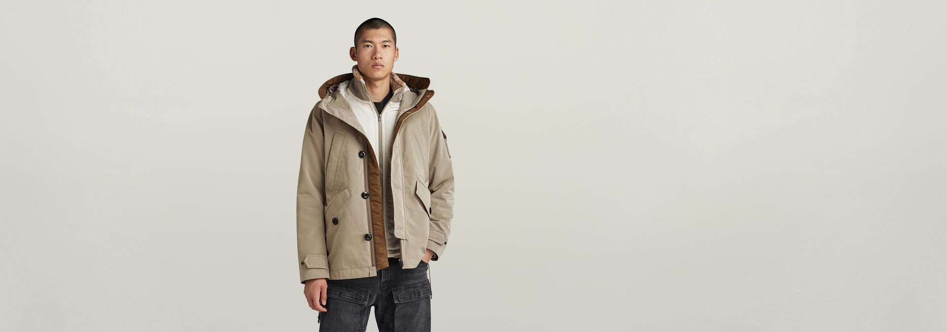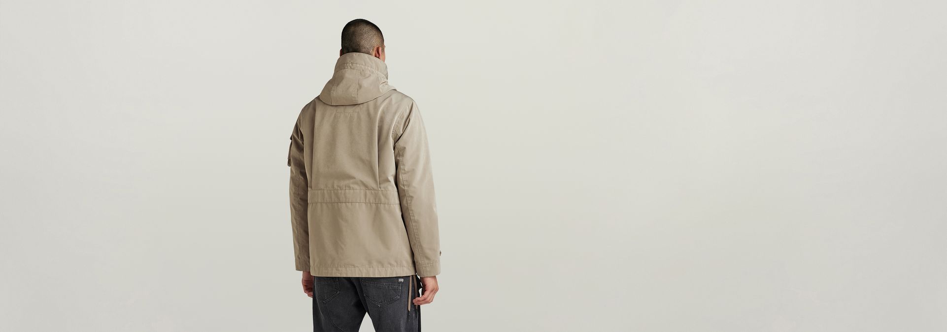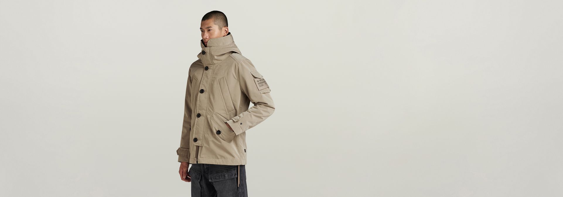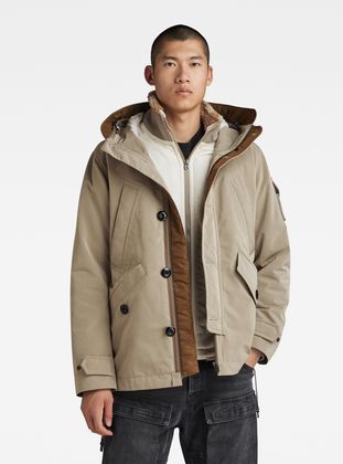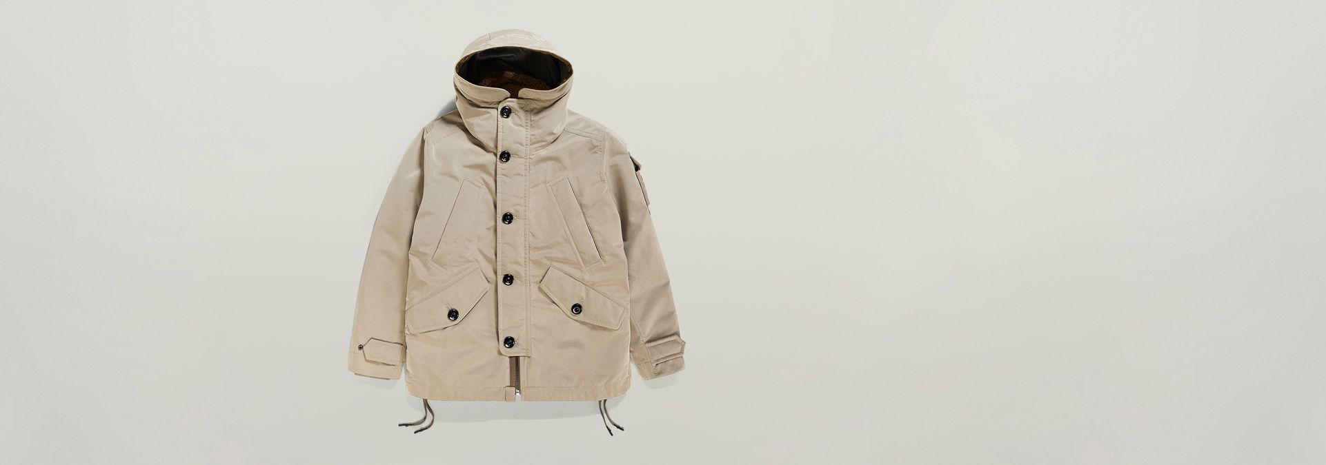 - Welt pockets at the chest, flap pockets at the upper sleeve and waist