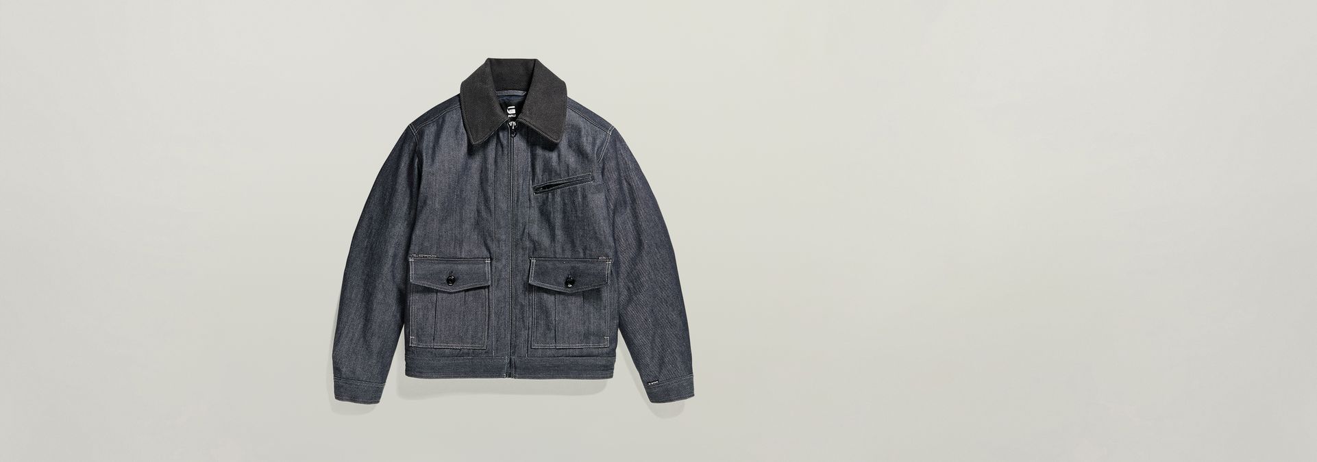 Denim jacket P3 is lightly padded with a soft filling. Volume pleats are added to the partly elasticated back. This jacket shows a single chest pocket with a zip closure. Cargo pockets at the waist offer a jeans button closure. For ease, a hanger loop and inner pocket are added to this denim P3 jacket.