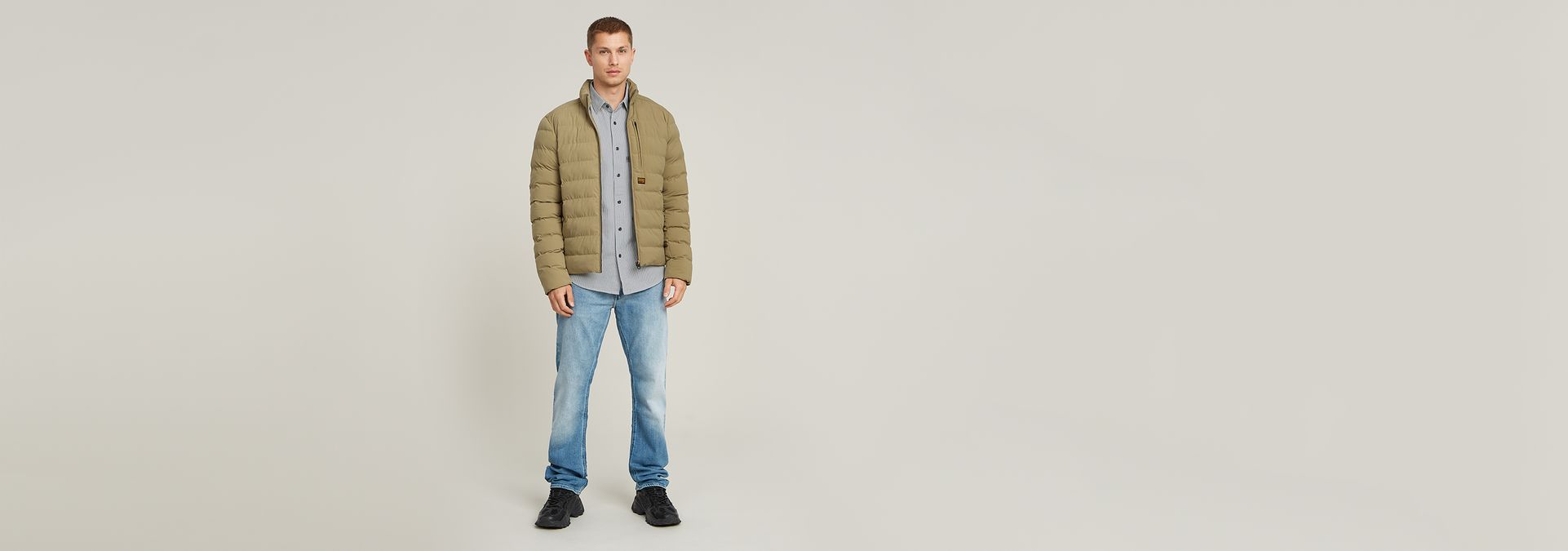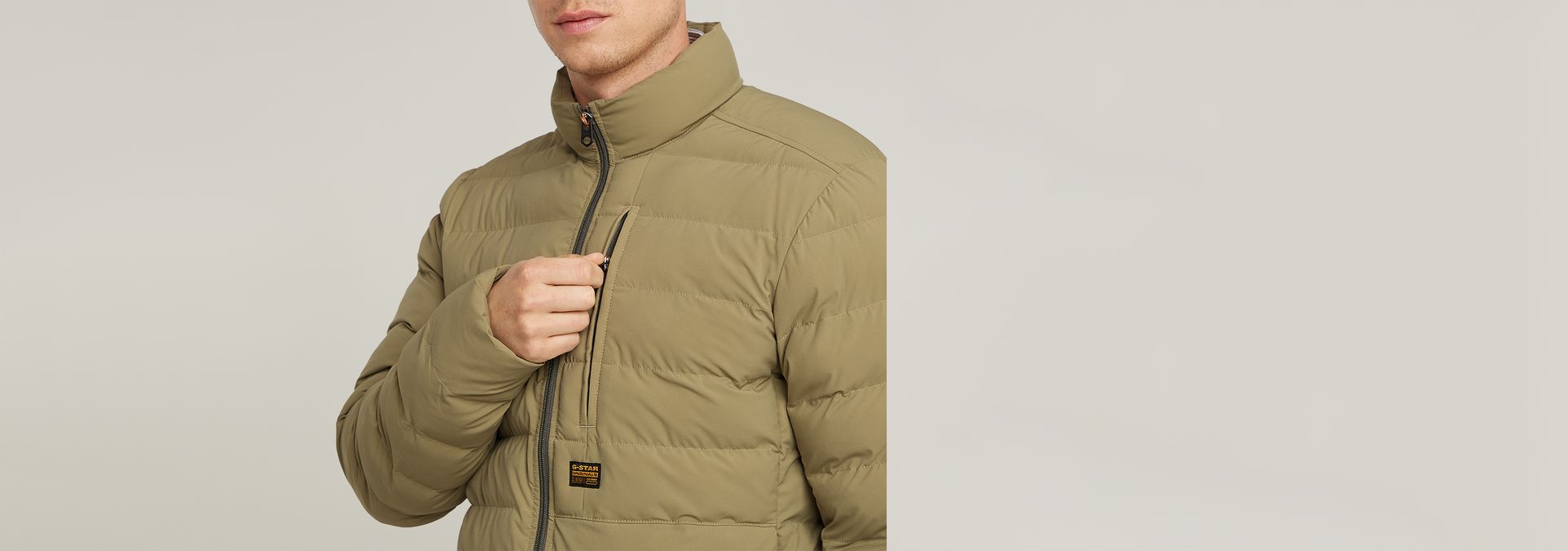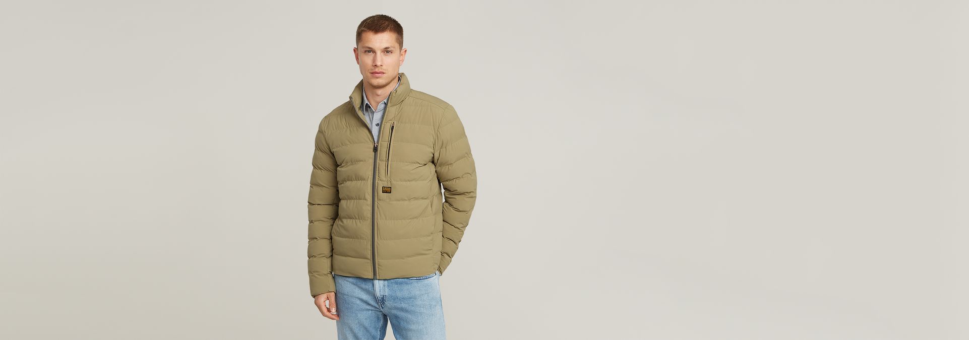 Liner jacket Foundation is padded and stitched through horizontally. An elasticated edge inside the sleeves blocks out the wind.
