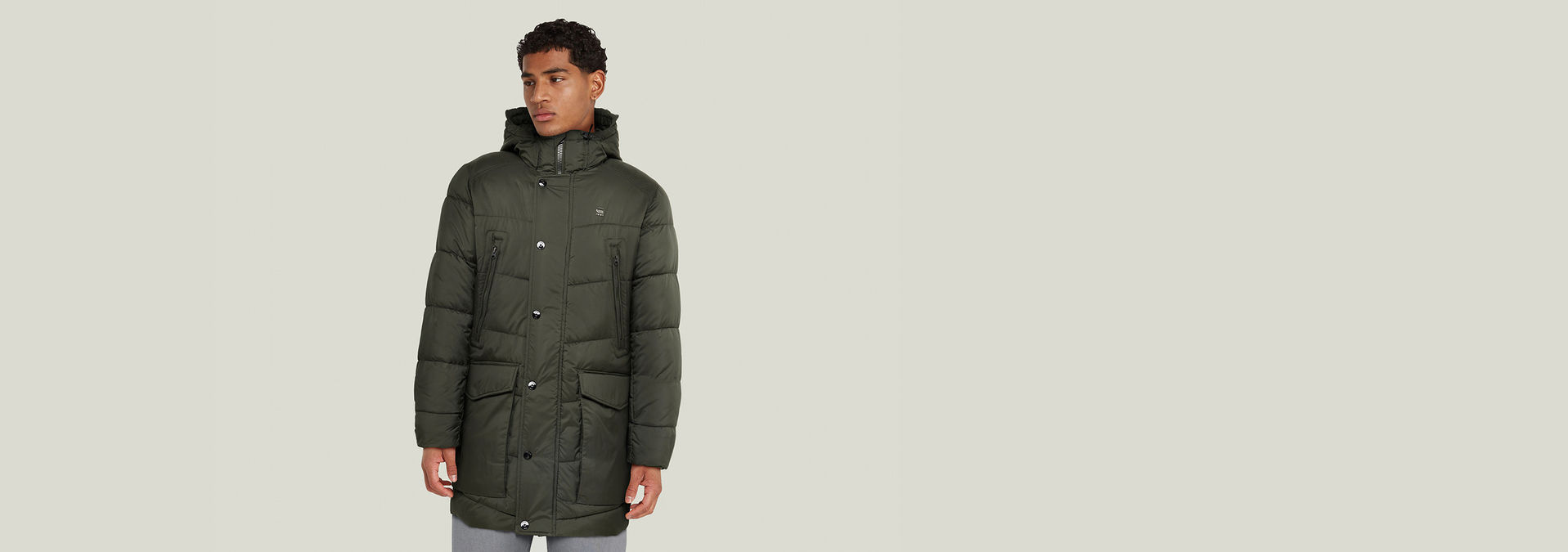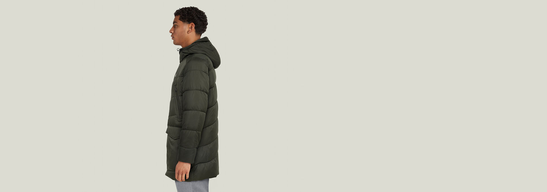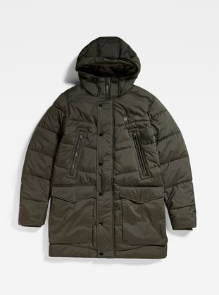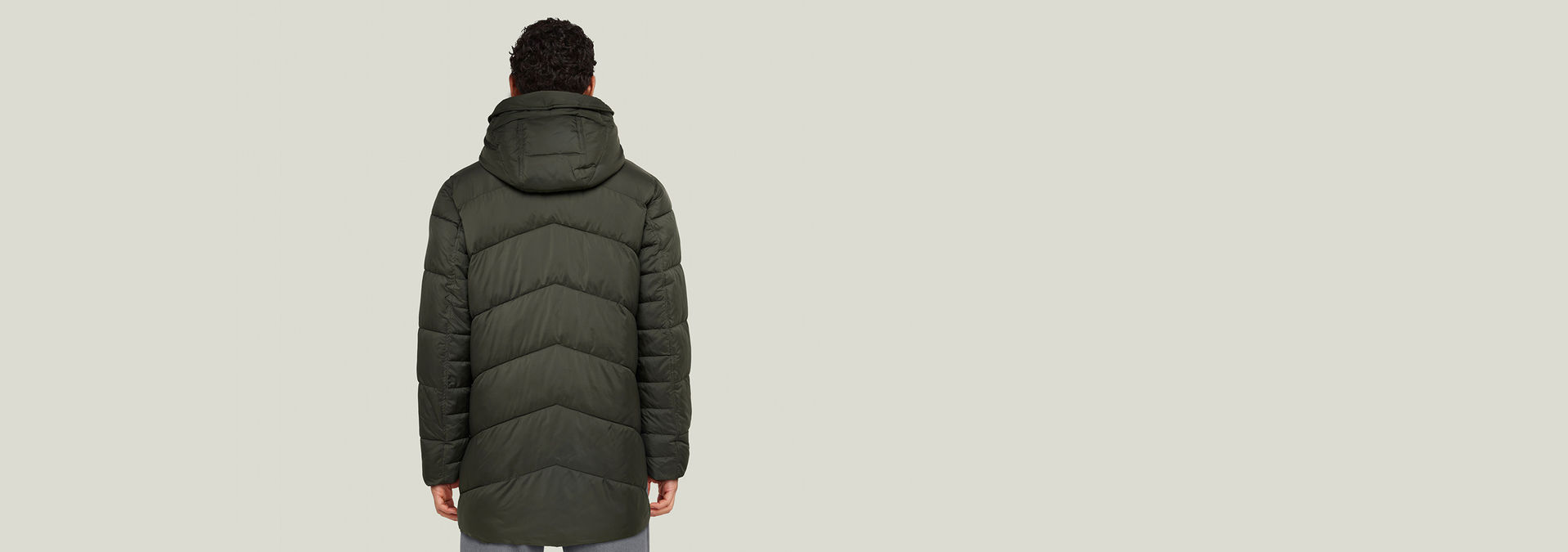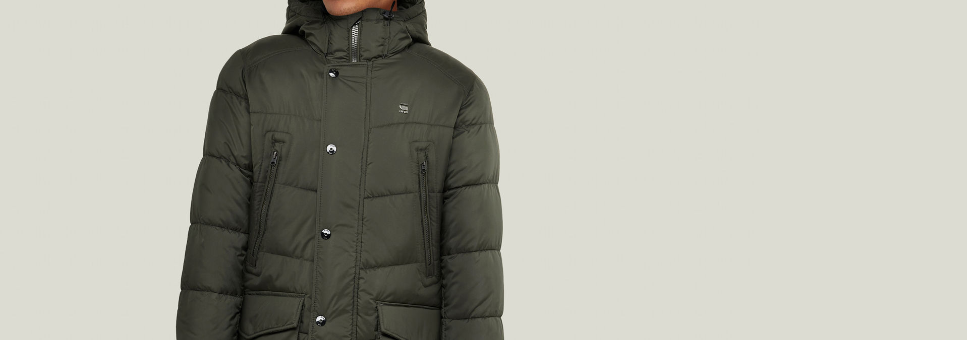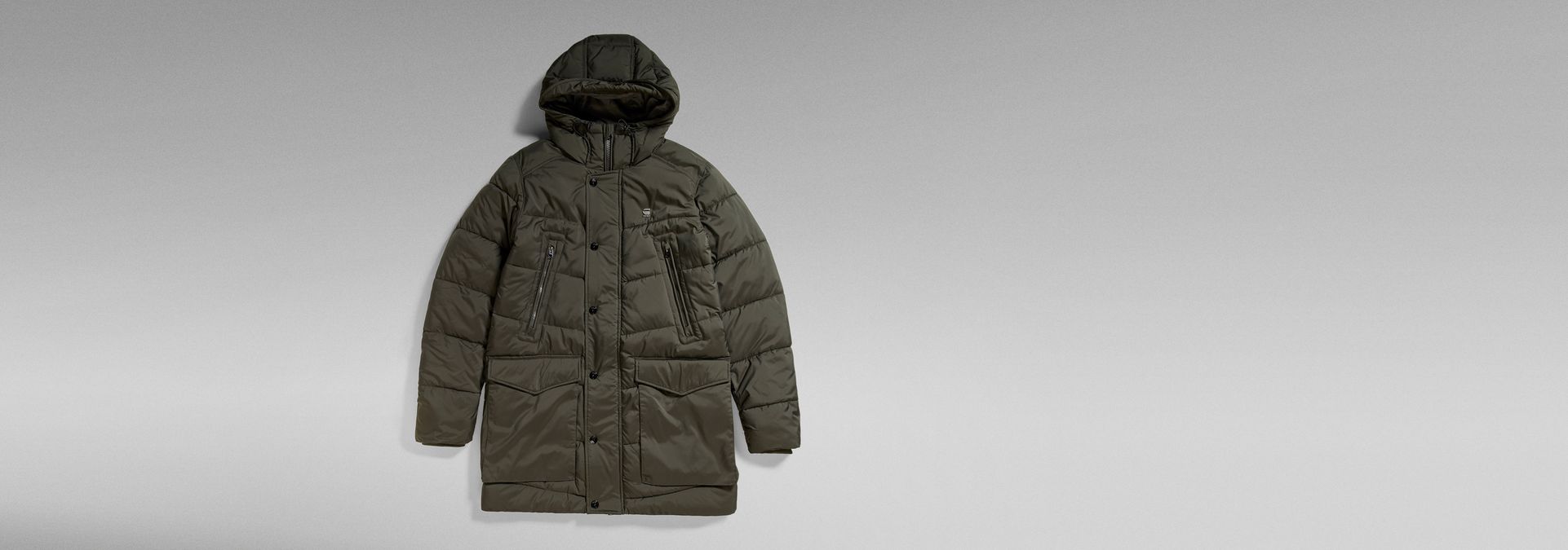 - Inside: hanger loop, pull cord at the waist and an inner pocket