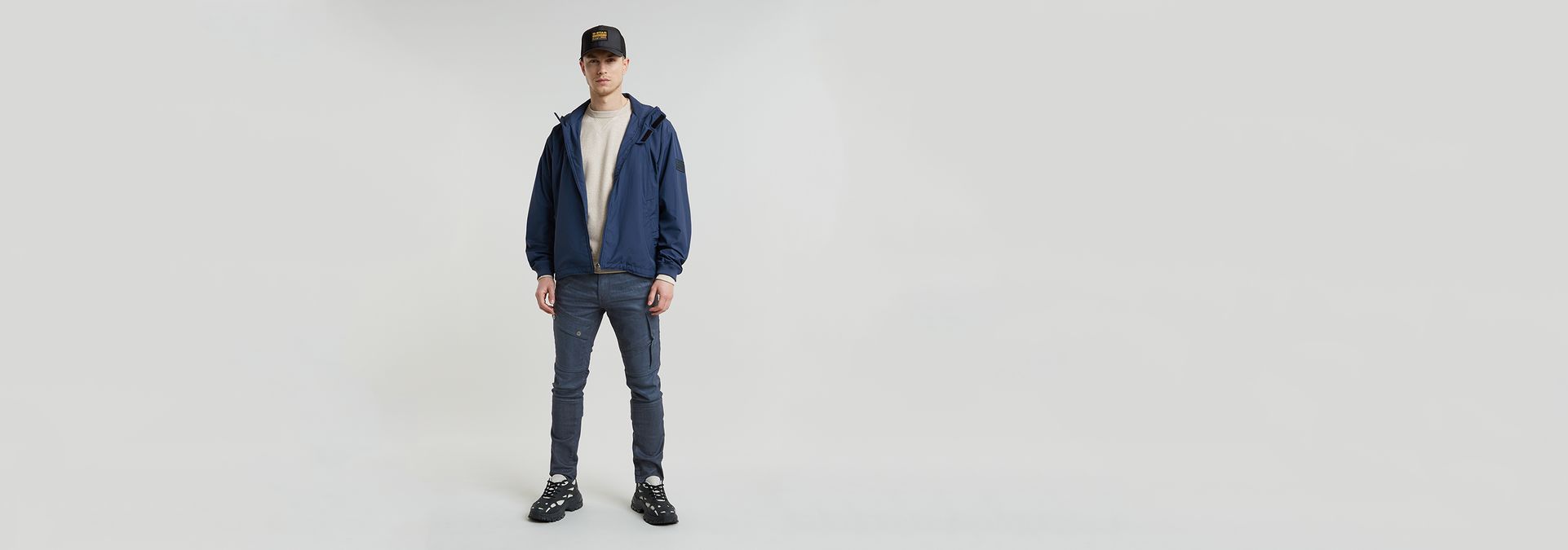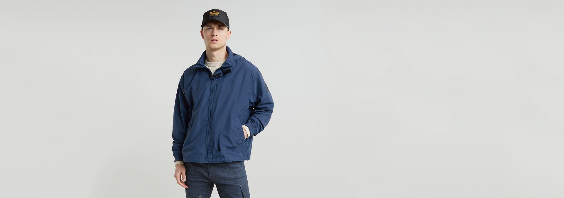 Lightweight jacket Expedition Sporty is cut in a straight fit and offers an inner drawcord to adjust the width. Inside the raised collar, a hood with drawcords is stored away. The zipper closure is partly covered.