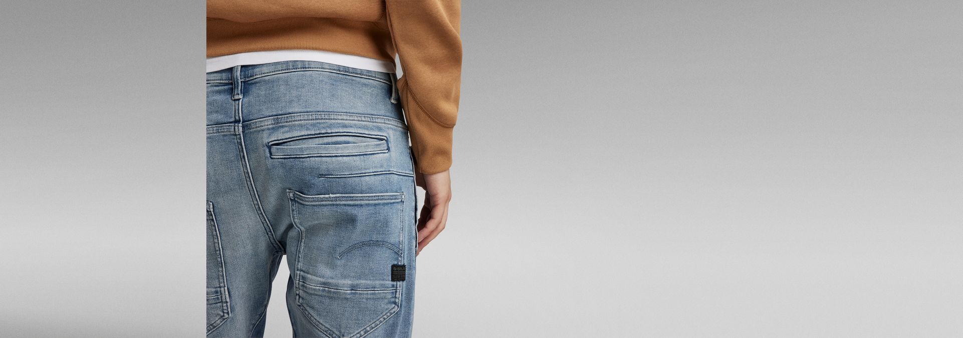 These D-Staq 3D Slim jeans combine a traditional 5-pocket construction with classic chino details. Featuring 9 pockets in total. The coin pocket is repositioned toward the front and the side seam pockets have an additional snap button closure. Horizontally placed seams at the back create an enhanced fit.