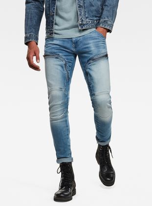 Rough zip pockets at upper leg distinguish the Air Defence zip skinny jeans. Inspired by fighter pilot suits that feature map pockets allowing the pilot to access them while seated during the flight. This pant is cut in a skinny silhouette with 3D legs, created by the inner leg paneling and knee seams. Additional inset pockets and patched on back pockets complete this style.