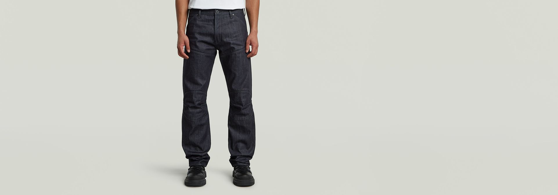 First introduced in 1996, the pioneering design of the G-STAR Elwood has been reinvented in a regular straight fit. Iconic features such as diagonal seams across the thighs, knee pads, and heel guards showcase our signature anatomical construction, providing enhanced movement.
