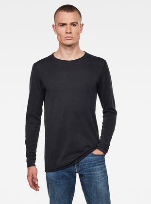 The Bronek knitted sweater offers an allover structured knit. The neckline, sleeves and waist are finished with a rolled up edge. Combine this sweater with one of our RAW jeans.