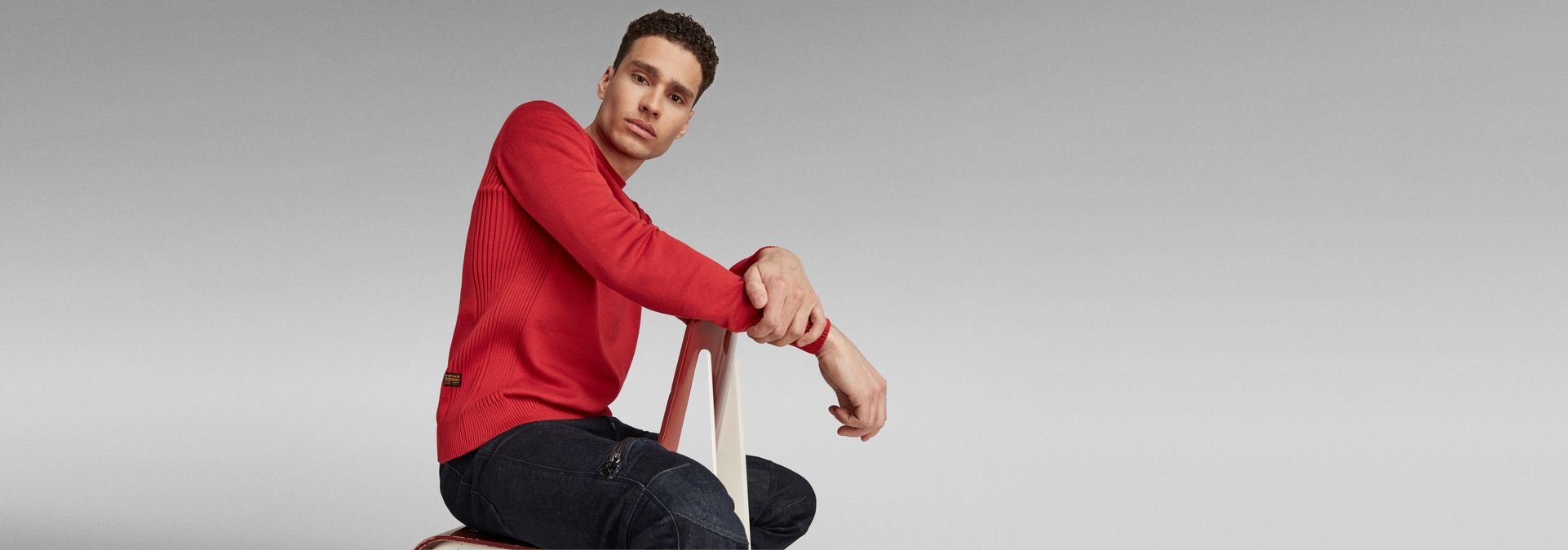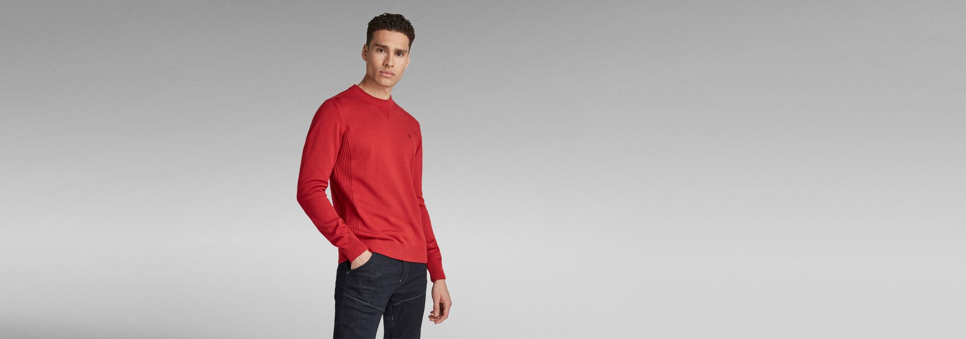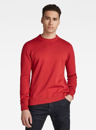 The Classic Sport knitted sweater features a straight fit with a ribbed neckline and a triangle inset piece. Also the side panels and waist are executed in a ribbed knit. The cuffs of this Classic Sport sweater show a curved edge, knitted in. A tonal colored G-Star RAW embroidery is set at the chest.