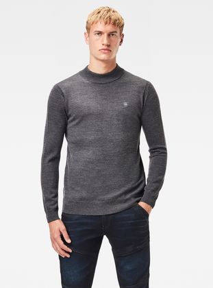 The Premium core sweater features a straight fit with a ribbed turtle neck. Also the cuffs and waist are executed in a ribbed knit. An embroidered G-Star RAW logo is added to the chest.