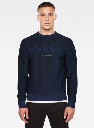 With an easy, straight cut this GSRAW knitted top is big on comfort and style. The neckline is created out of a ribbed knit, as well as the bottom finish. A triangle piece is knitted in just below, in the same structure as the sidepanels and underarm panels. The G-Star RAW graphic at chest is knitted in and the lower sleeve offers another graphic.