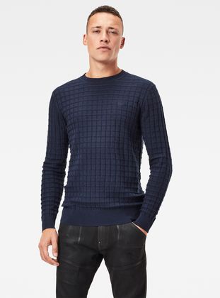 The Core Table sweater is designed with a crew neck. A solid piece with lots of texture. The high and lows created by the knitted lines, make a check pattern. Grown on ribbed cuffs and waist finish this knitted sweater.