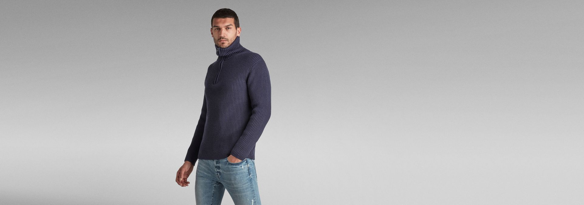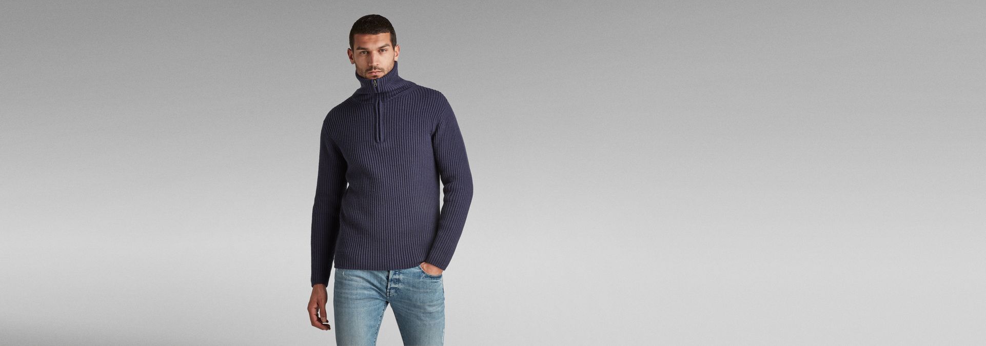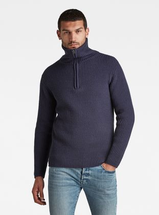 Knitted sweater Chunky Skipper is designed in a straight fit. It offers a high raised collar with a short zipper. Wear it high up or fold it down for a different look.