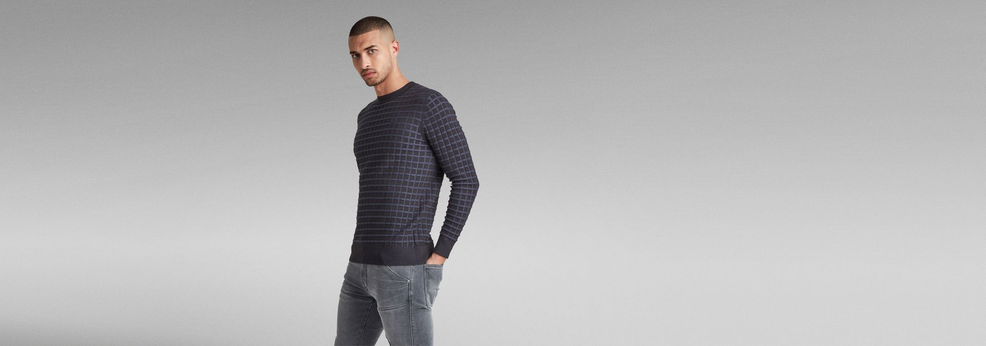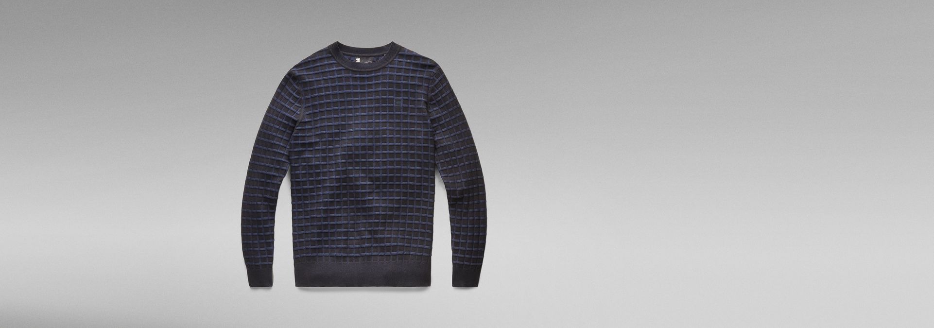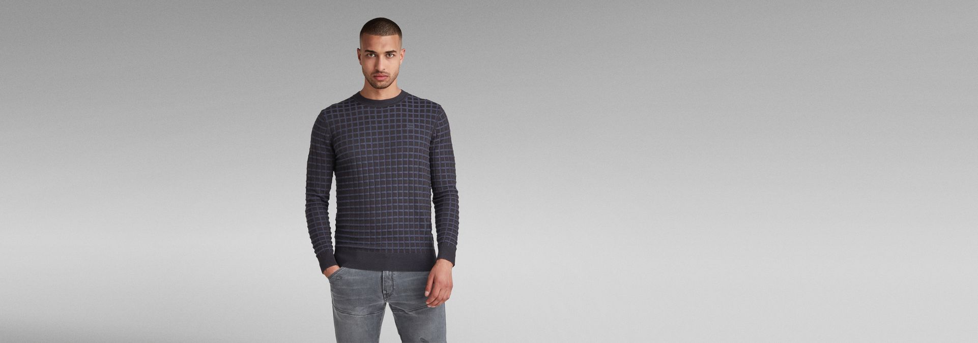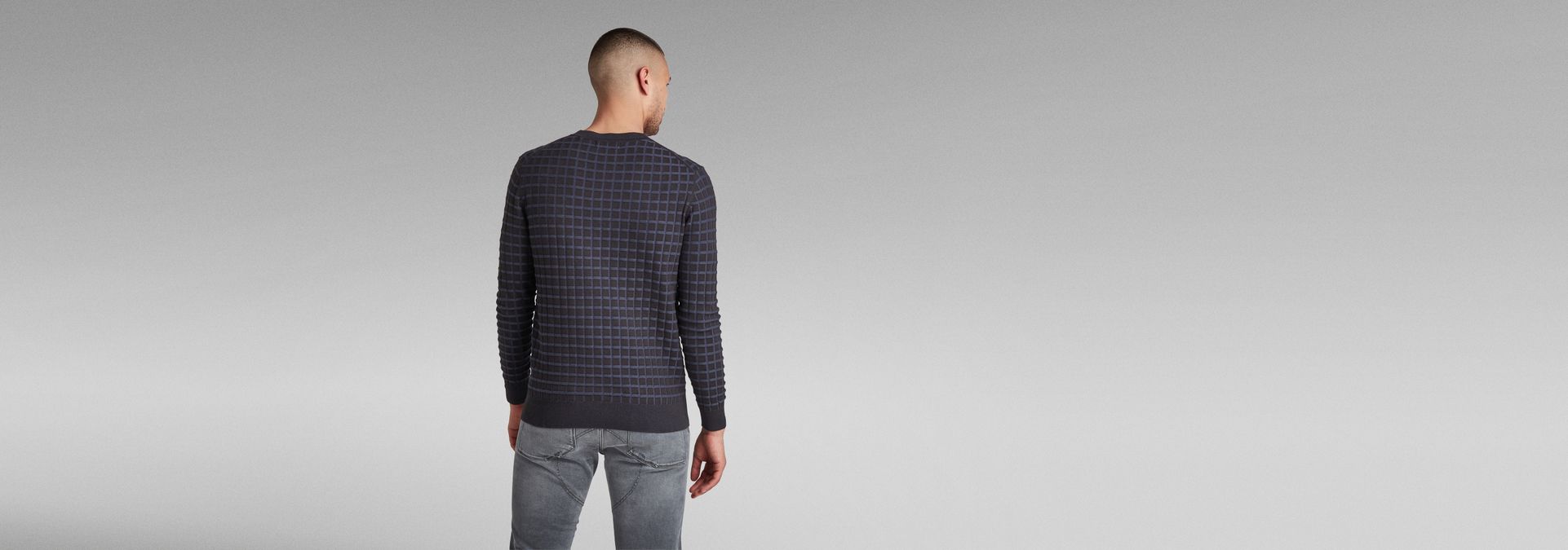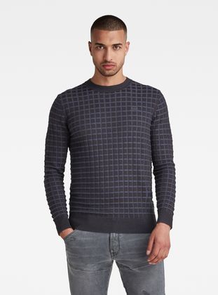 Knitted sweater Table is designed in a straight fit and offers a solid piece with lots of texture. The high and lows created by the knitted lines, make a check pattern. Grown on ribbed cuffs and waist finish this knitted sweater.