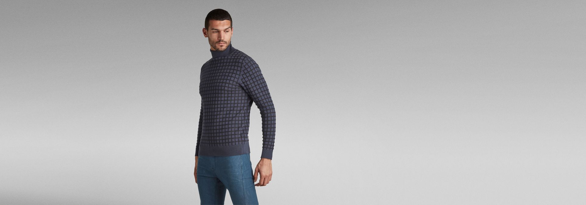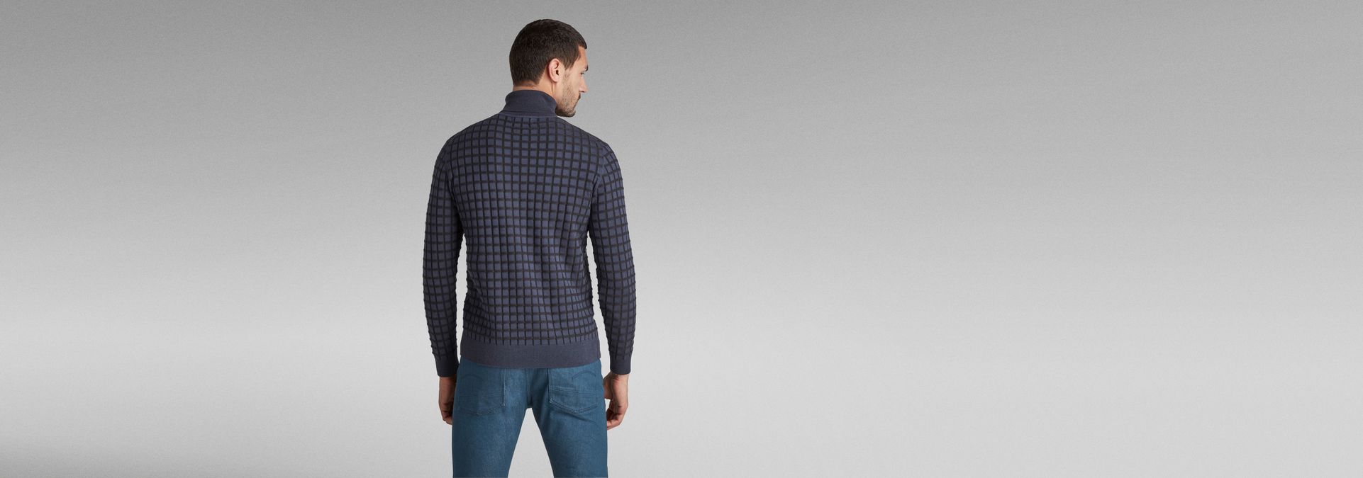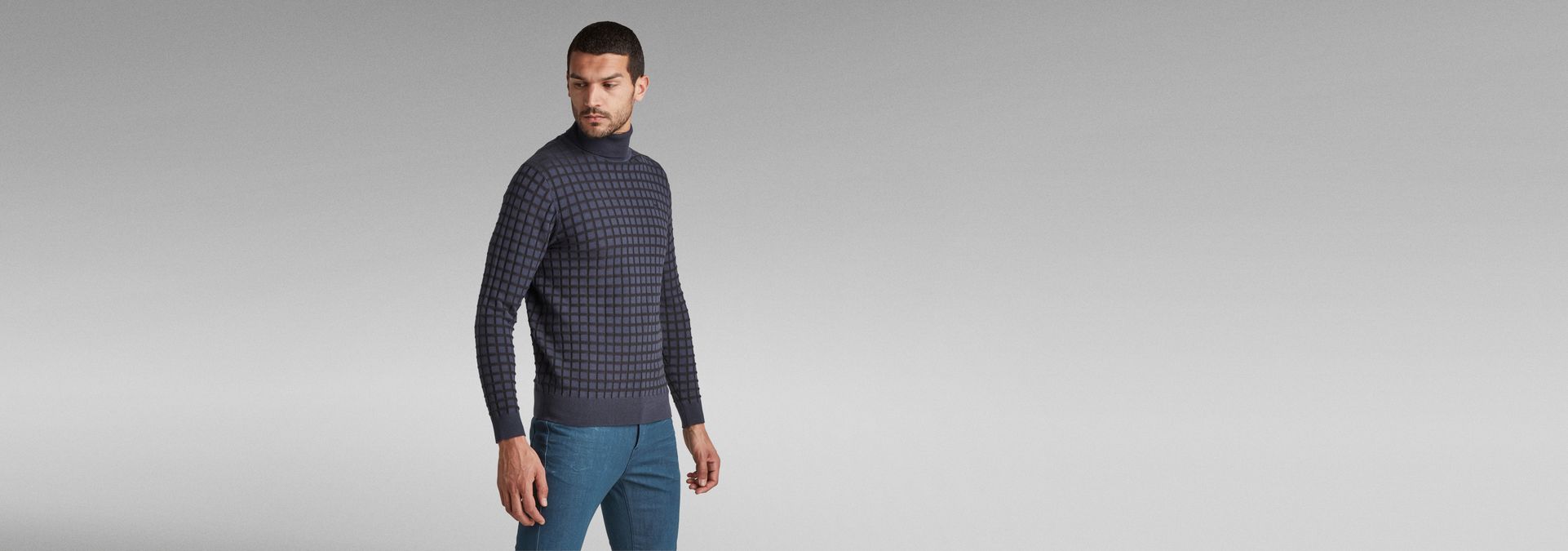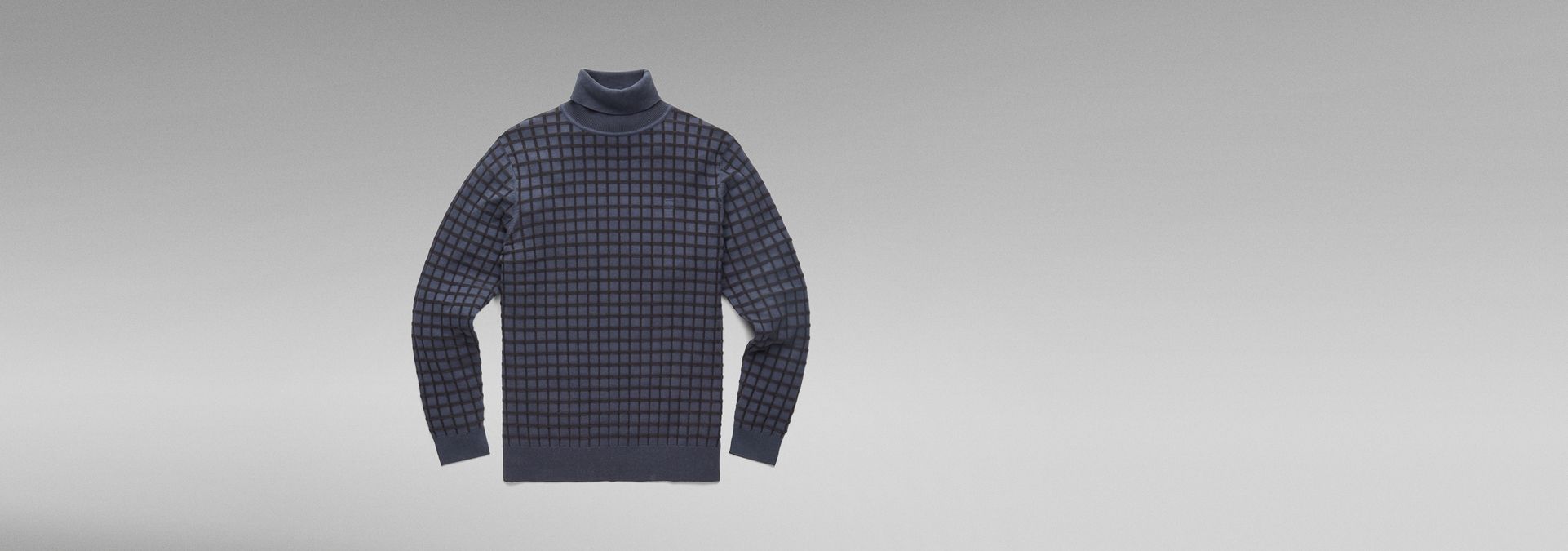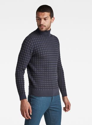Knitted Turtleneck sweater Table is designed in a straight fit and offers a solid piece with lots of texture. The high and lows created by the knitted lines, make a check pattern. The fine knitted turtleneck completes it.