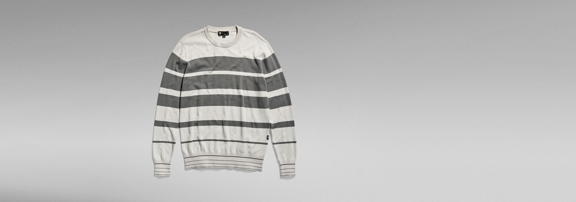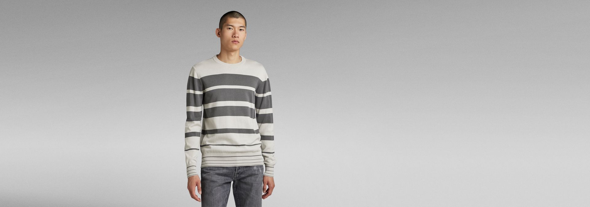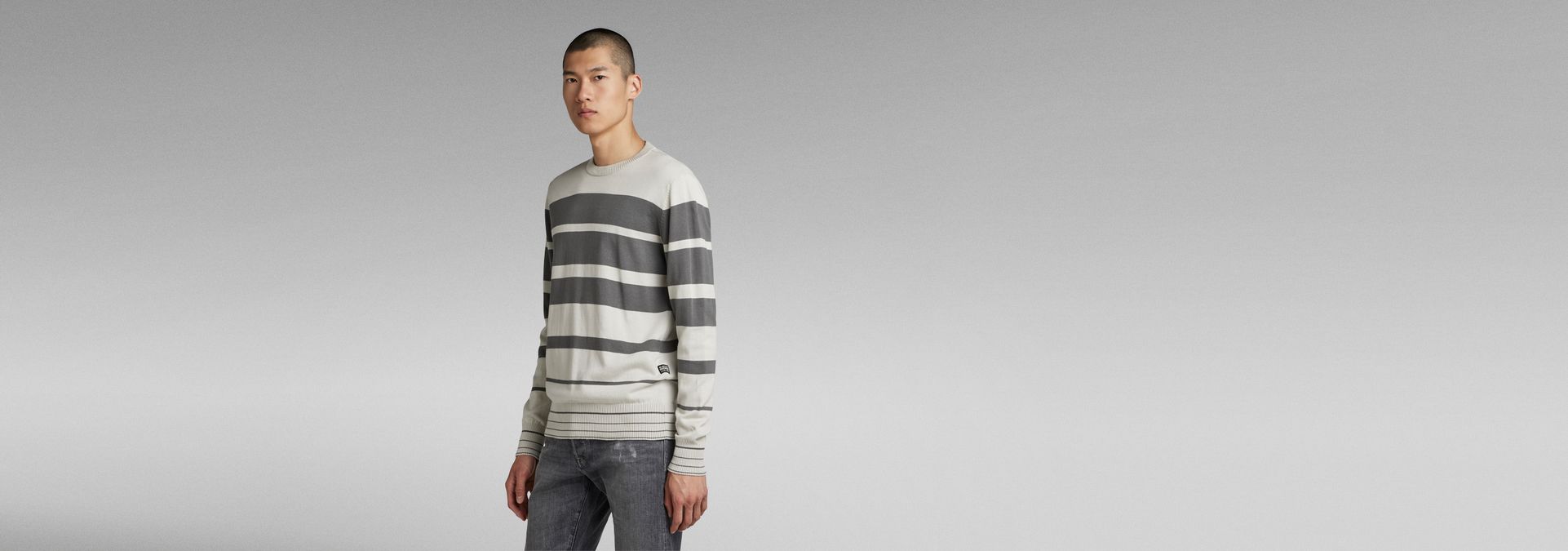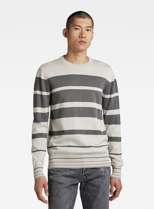 Knitted sweater Irregular Stripe offers a horizontal stripe repeat that is knitted in. A ribbed edge finishes the rounded neck, sleeves and hem to add to a comfortable fit.