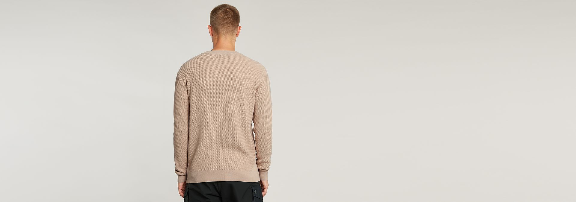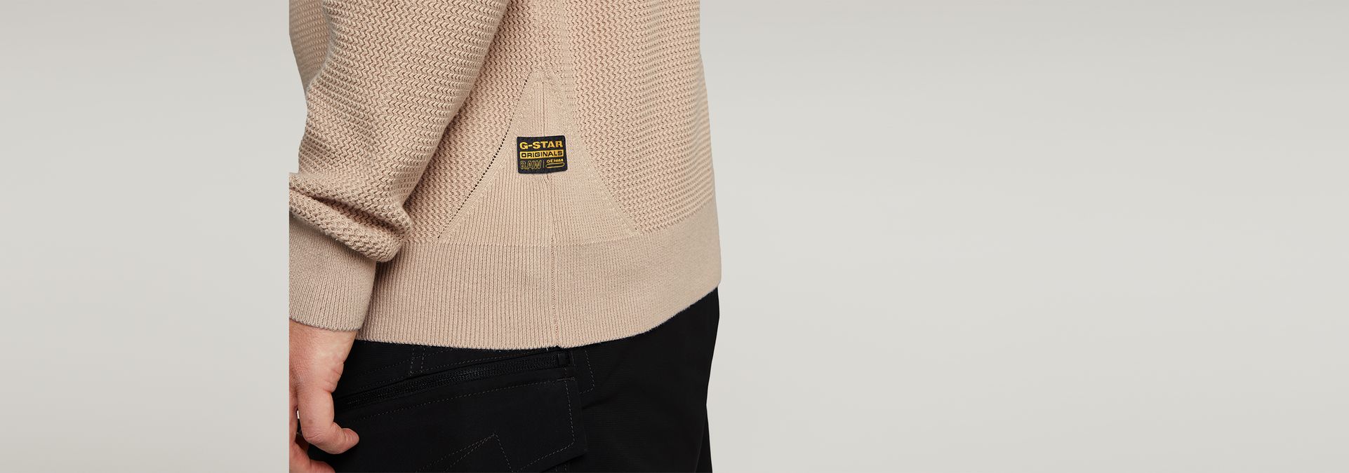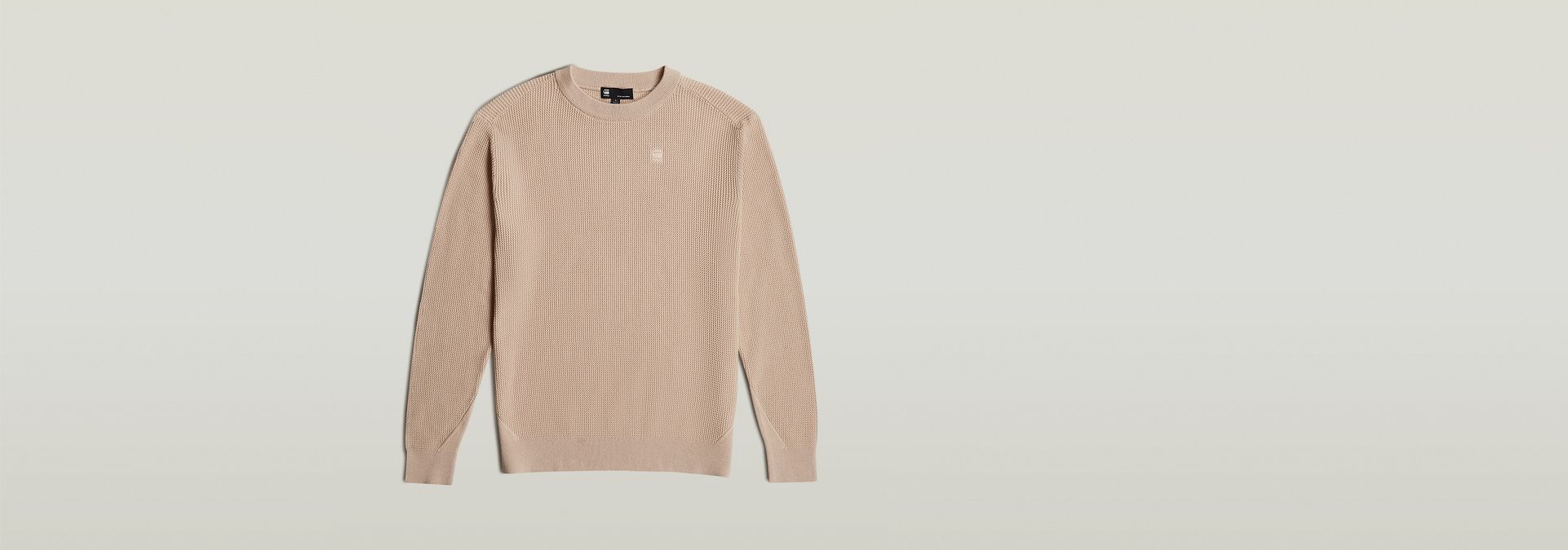 Knitted sweater Serrated is designed in a zigzag knit texture and offers a round neck. The ribbed edge at the sleeves and waist show an angled design at the sides. The G-STAR embroidery at the chest signs it off.
