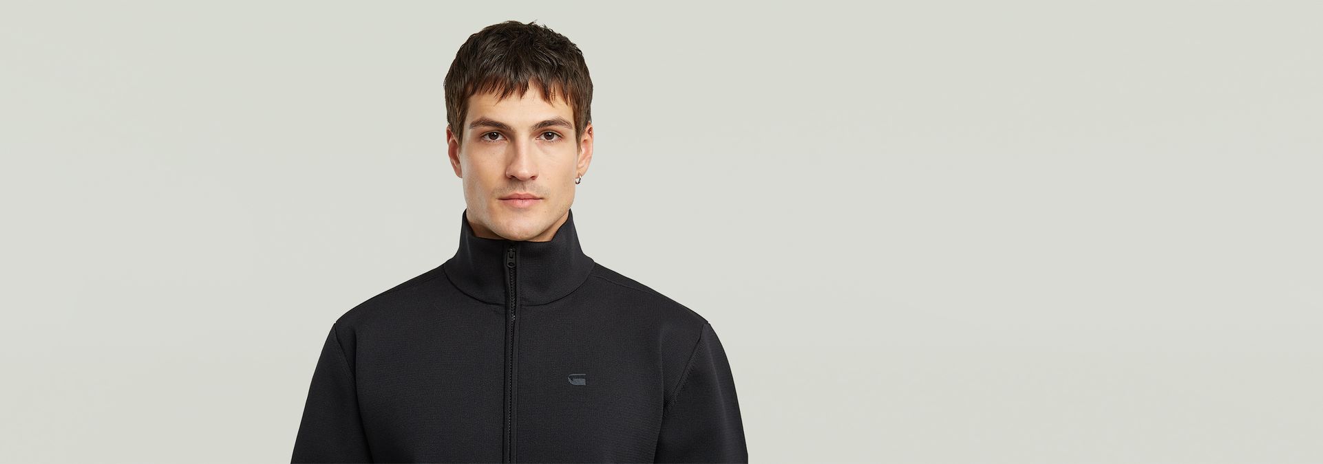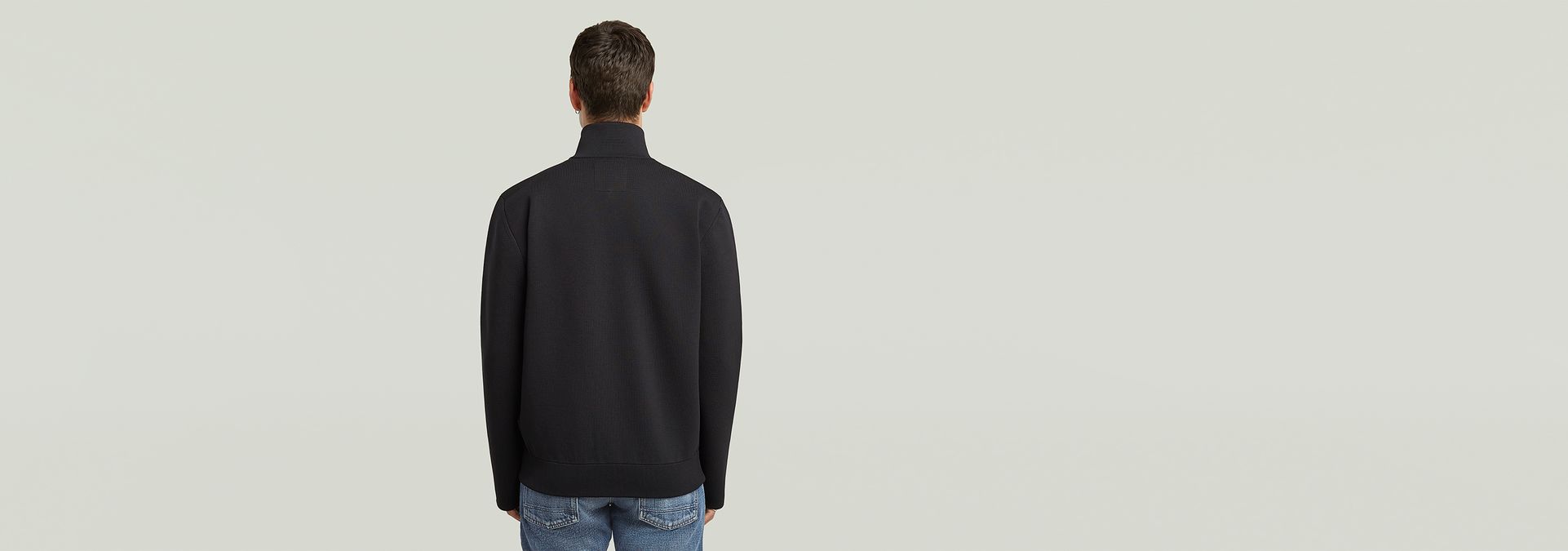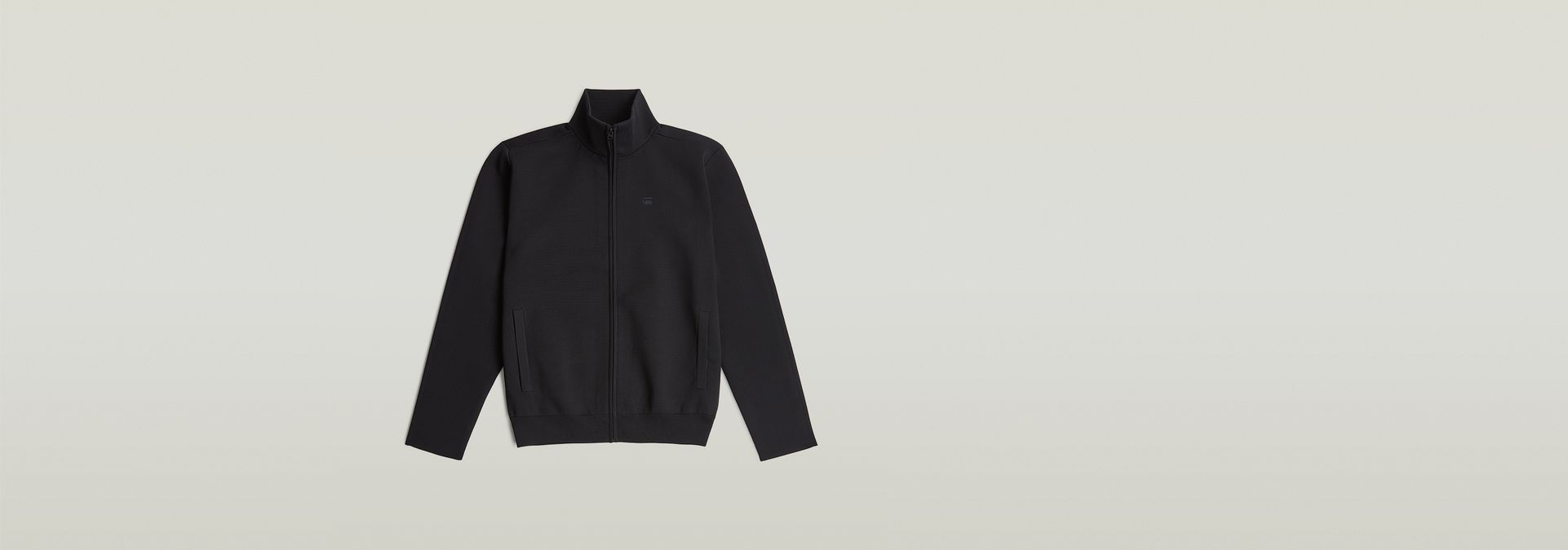 The Tech Knit Jacket offers a regular fit with a stand-up collar and zip closure, perfect for a sleek look.