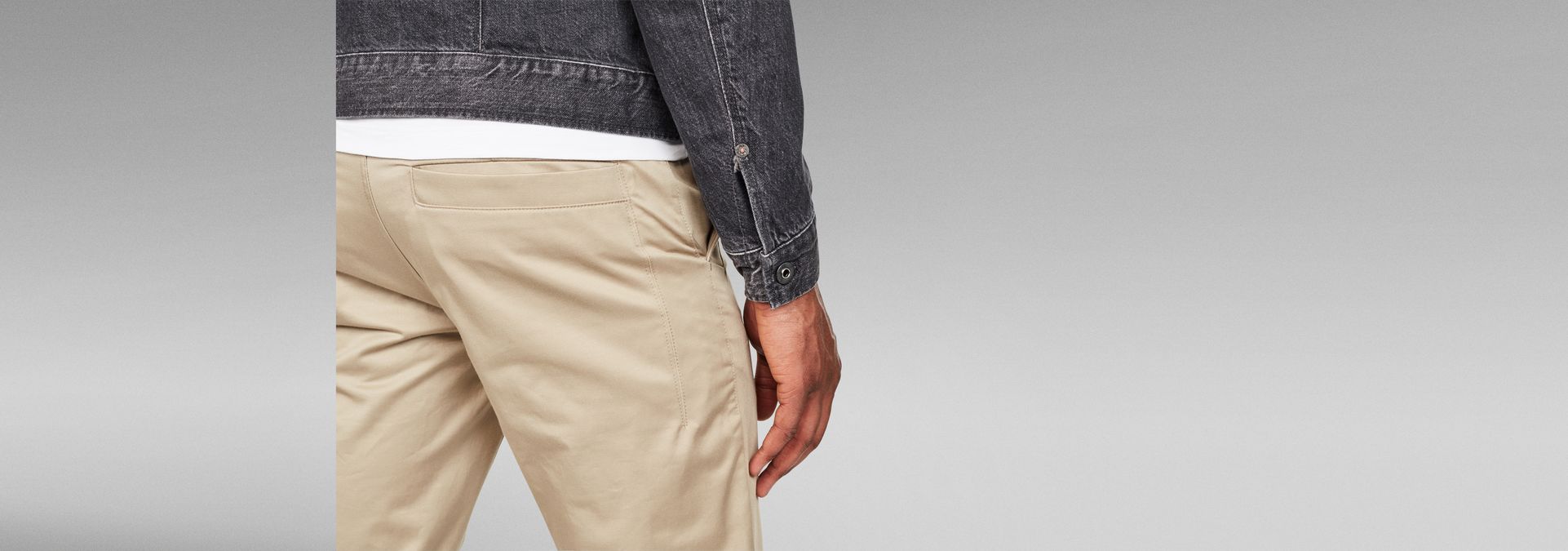 The Bronson slim chino is the G-Star RAW interpretation of a slim fitted chino, enhanced with engineered seams that are placed aligned with the side seam itself. The coin pocket is integrated in the side seam. Broad welt pocket inserts complete the chino look.