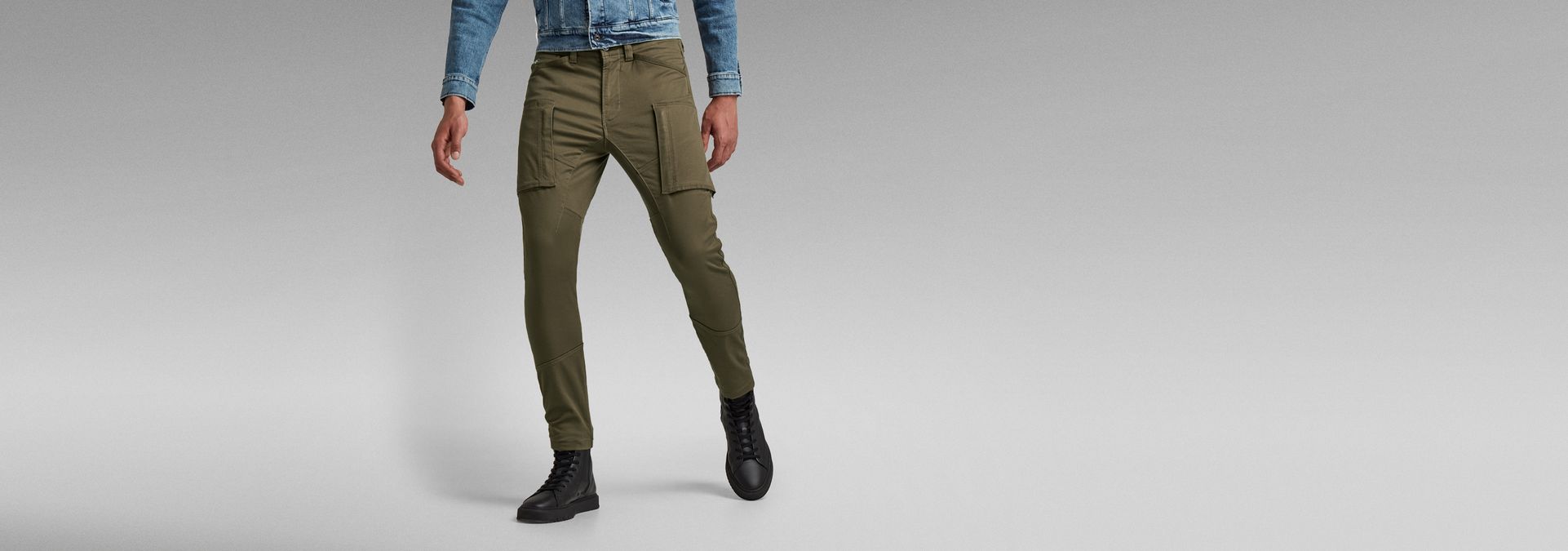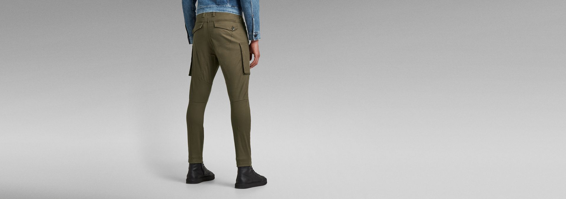 These skinny Cargo Pants offer 3D patched on pockets with a concealed zipper along the side. Woven tape is applied at the entrance of the inset pockets. Also at the backside pockets are created. These show a flap and button closure. Diagonal seams below give additional shaping to the backside.