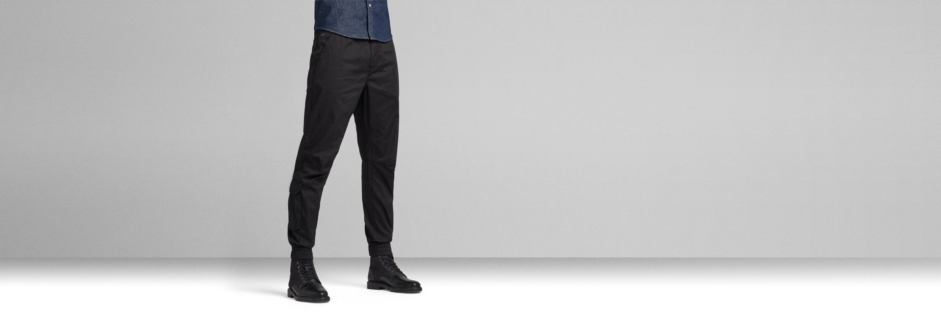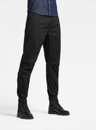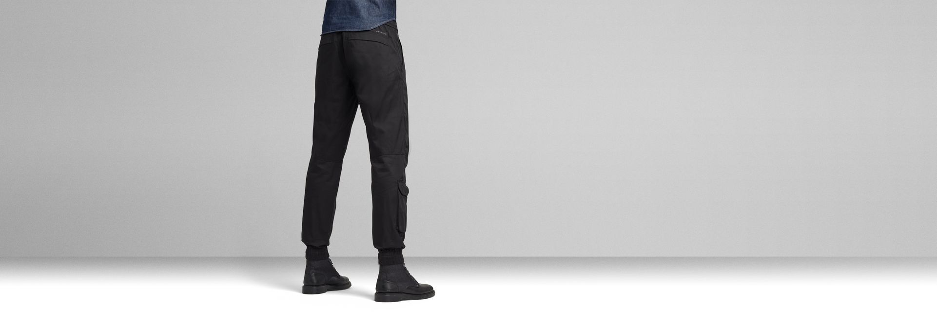 This Chino trainer is designed in a relaxed fit and offers a cuffed leg hem finish. An elasticated waist shows a drawcord inside for more adjustability. Broad welt pockets are created at the waist and upper back. An additional bellows pocket with a flap is set at the lower leg and offers a Velcro closure.