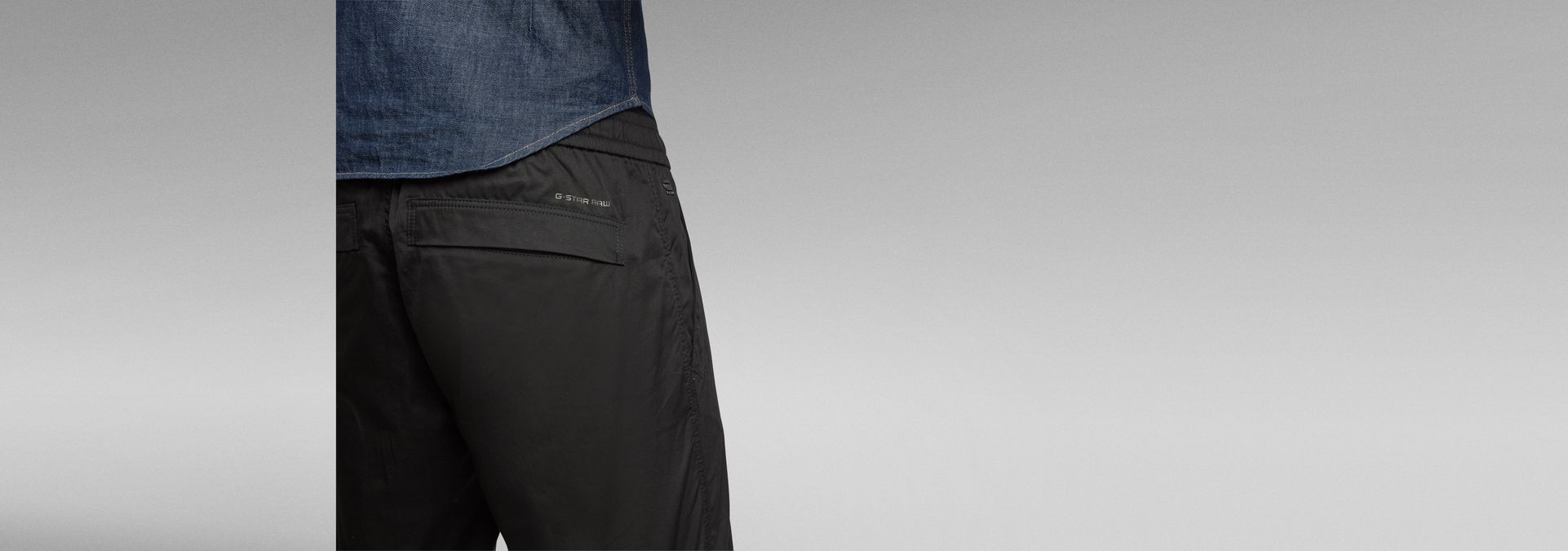 - G-Star RAW logo rivet at the front hip, printed graphic above the back pocket