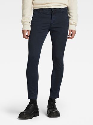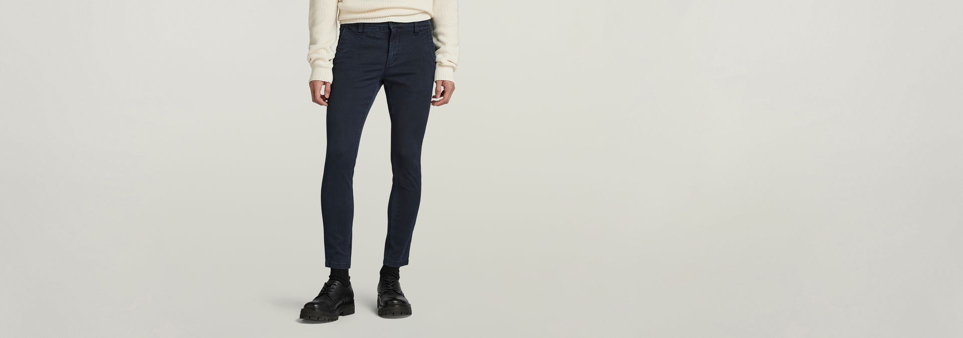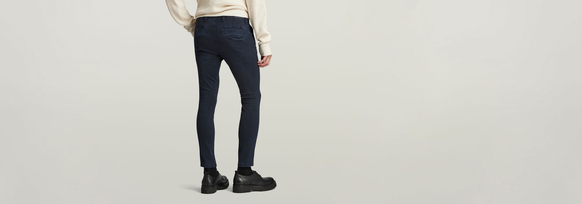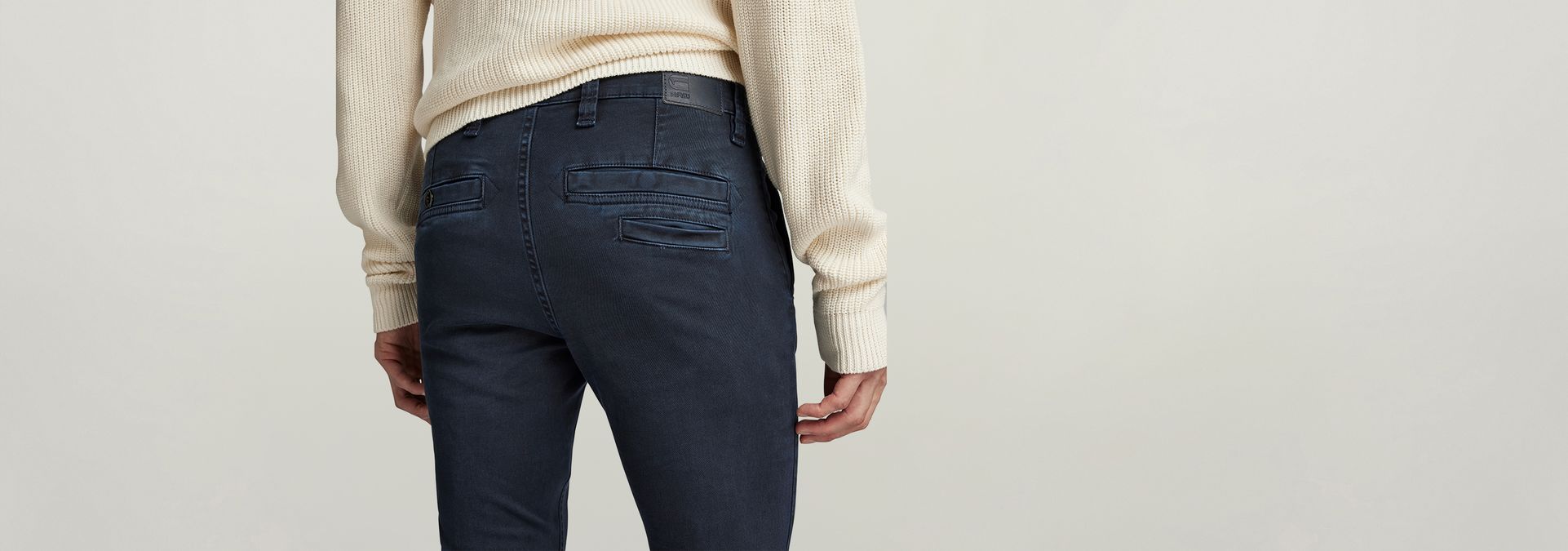 This Skinny chino is designed with a single welt phone pocket set below one of the back pockets. The vertical seams at the upper back hip create a strong silhouette. The front offers inset pockets with a design stitch alongside. A coin pocket is integrated at the waistband.
