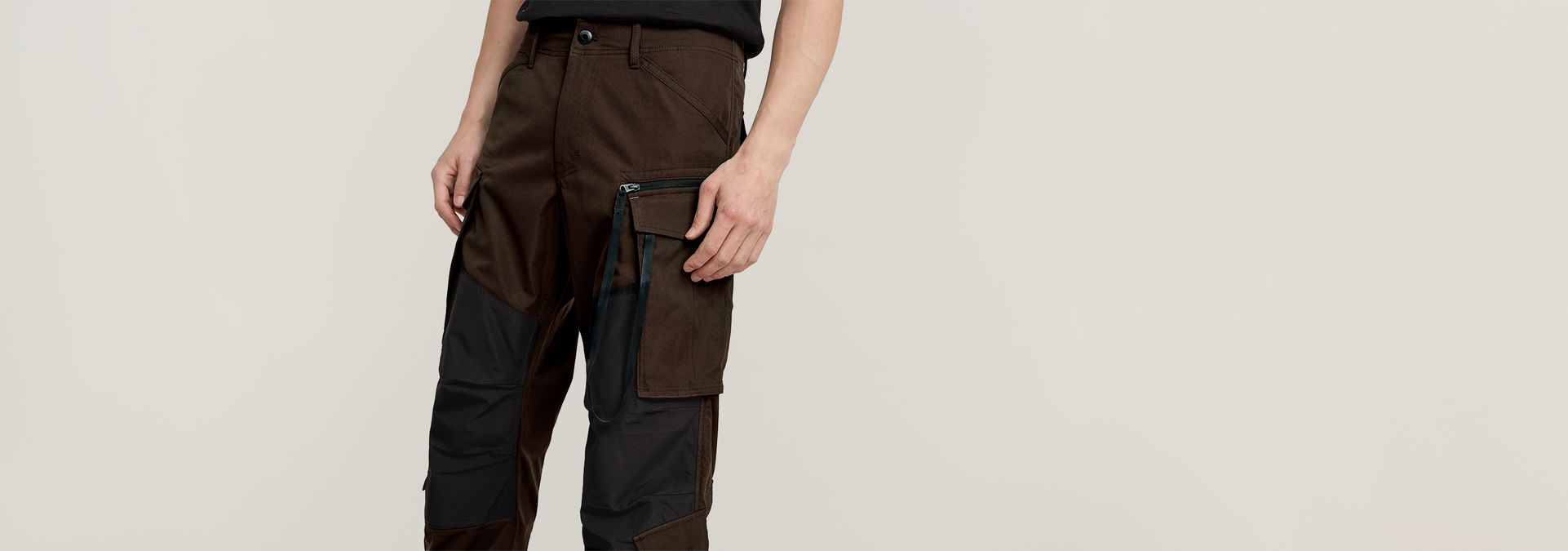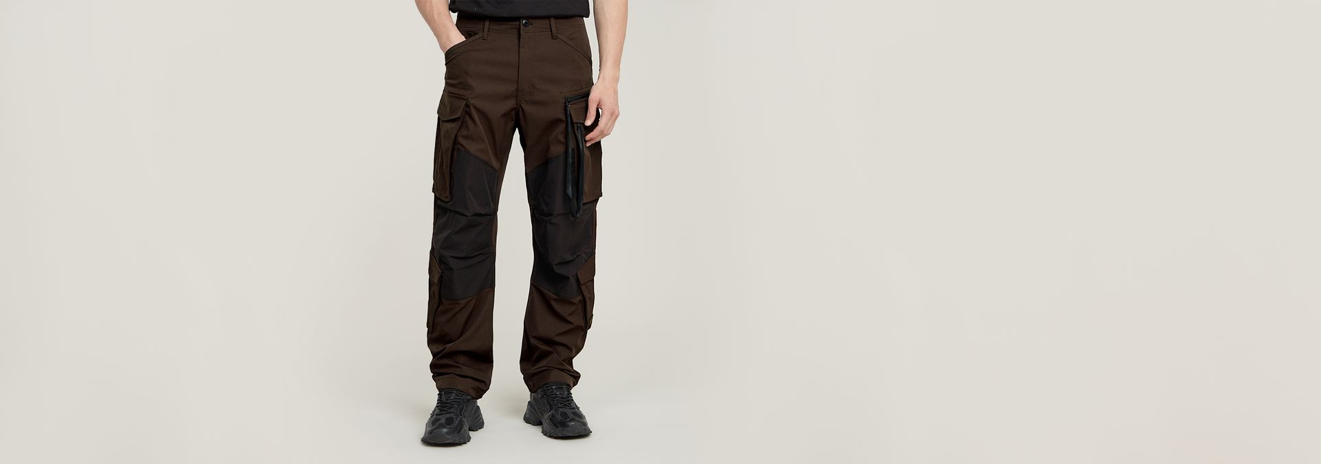 The Rovic Zip 3D pants are cut in a loose fit. Pull the integrated tape at the hem for a tapered look. A 3D-effect is created around the knee. Behind one of the cargo pockets a zipper pocket with a woven tape is set. Also at the calf and back pockets are created.