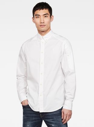 A single welt pocket is caught in the sleeveseam of this Stalt Sleeve Pocket straight shirt. This shirt offers a button down collar. A straight fitted style, cut with long sleeves and a curved hem, works on any G-Star RAW denim.