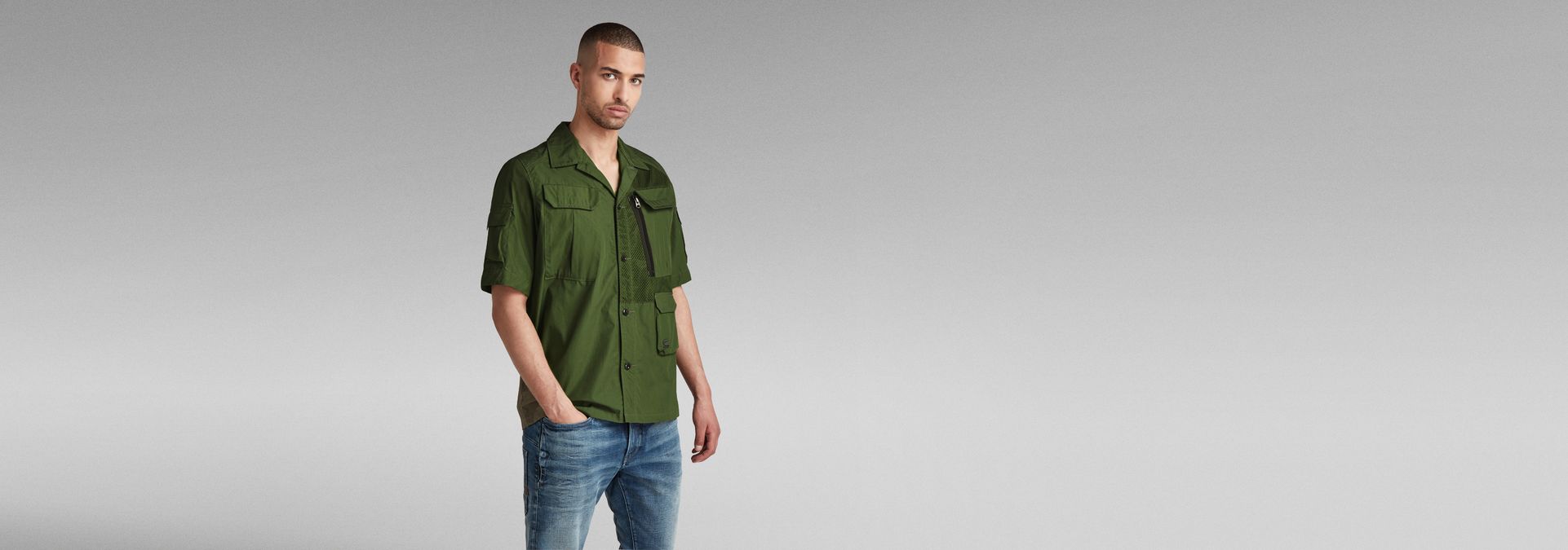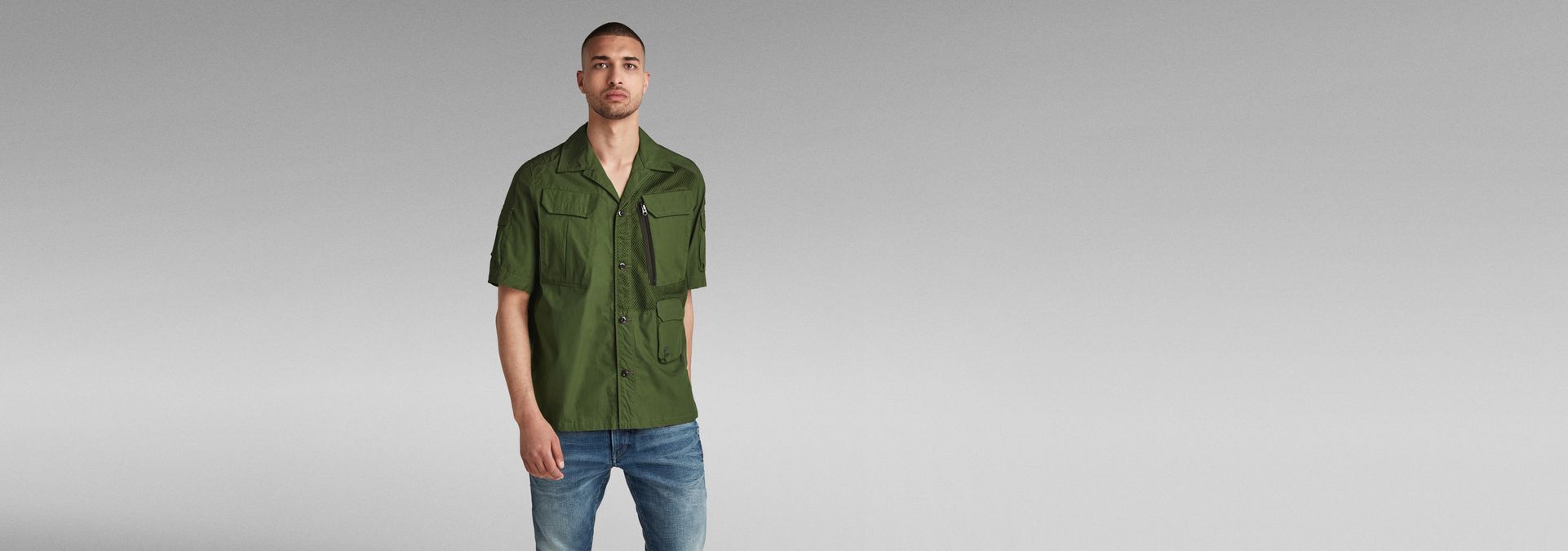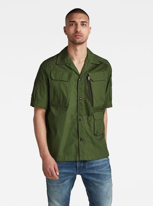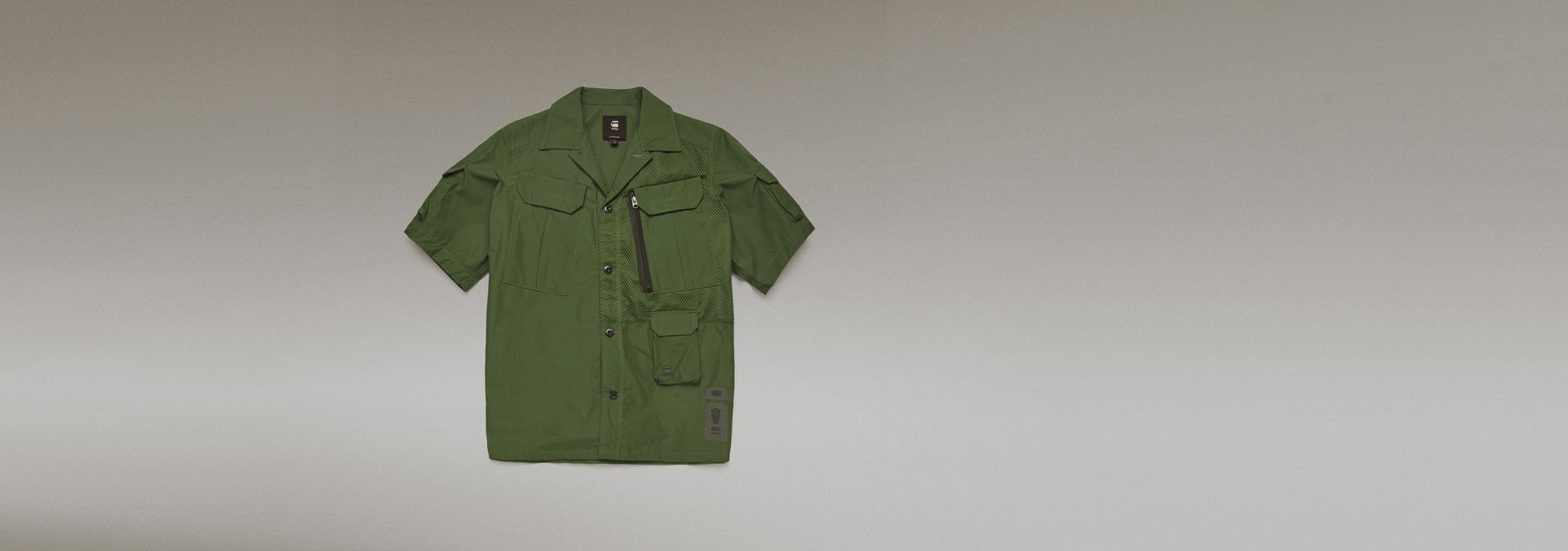 This short sleeved Utility Poplin shirt is designed in a shortened, cropped length and offers a camp collar. An additional mesh layer is added to the upper front. One of the cargo pockets offers an additional side zip pocket. The sleeves show 3D flap pockets alike the one at the lower front. The wide flap pocket added to the lower back completes it.