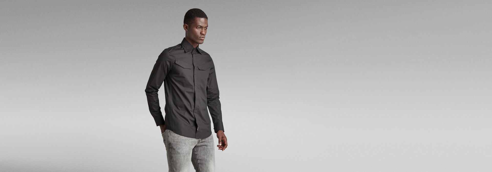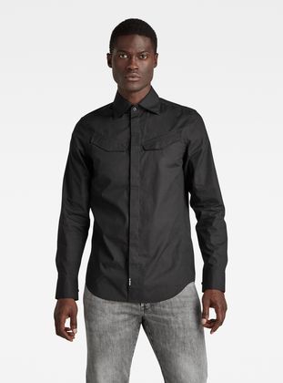 Shirt Slant Pocket is cut in a slim fit. This design offers flap pockets at the chest that are combined with a hidden button closure at the center. At the back, two slanted pieces create shoulder panels with an enhanced fit. The G-Star RAW embroidery at the lower front signs it off.