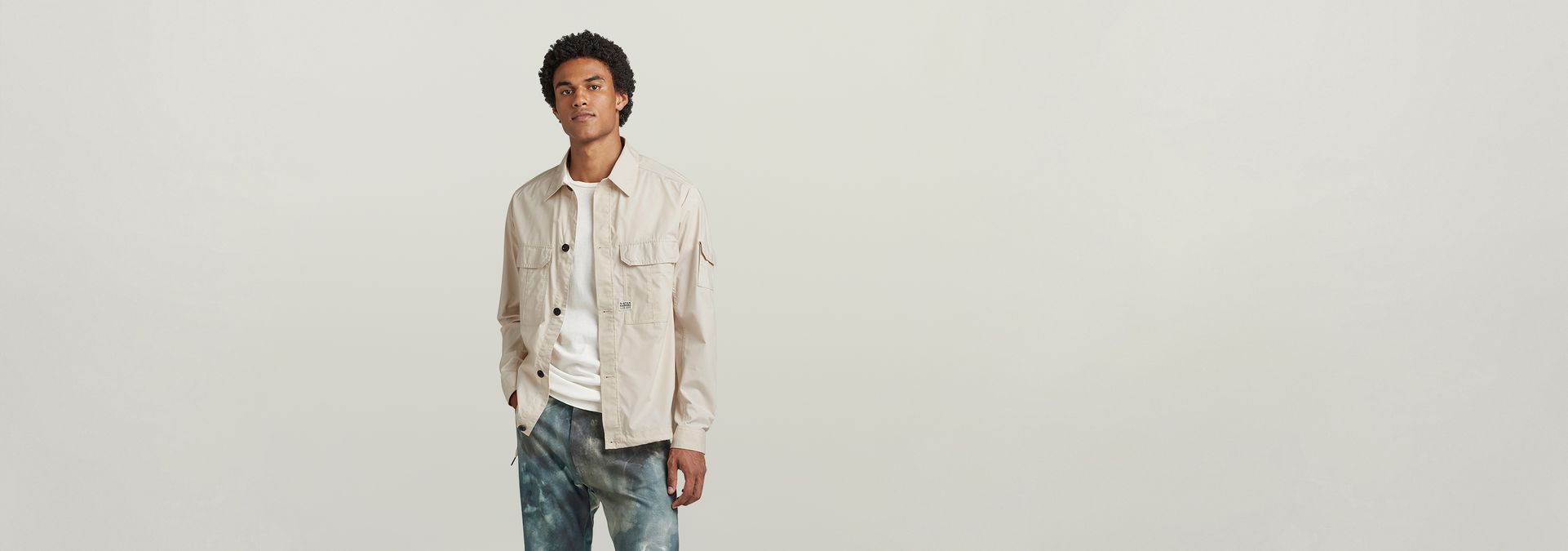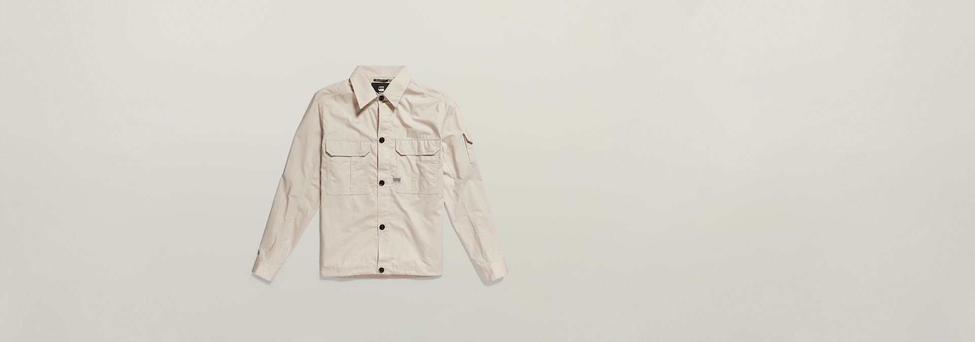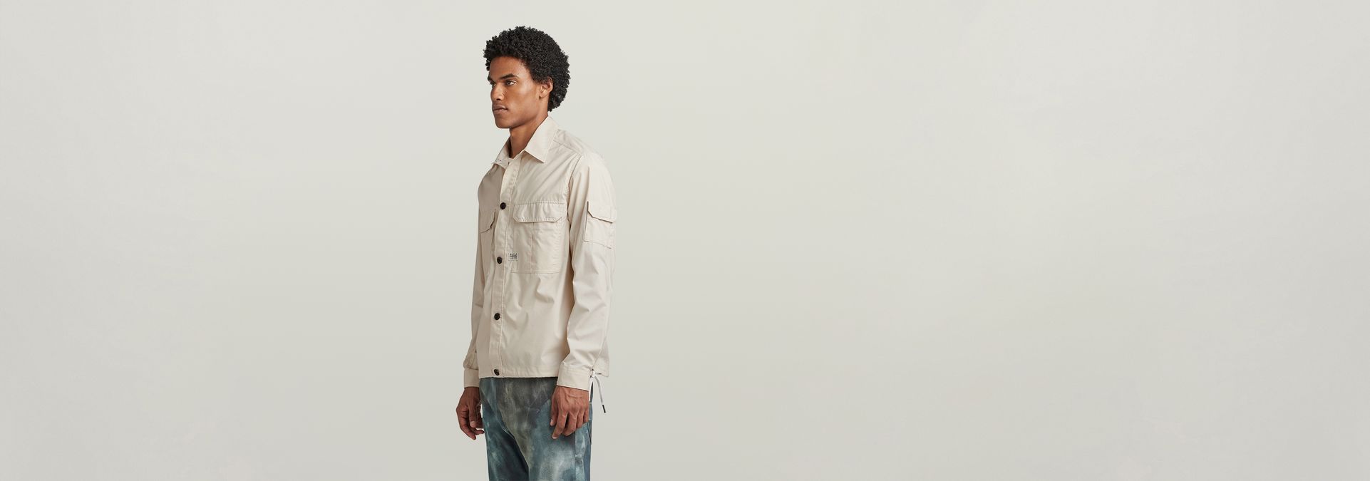 Shirt 2-Pocket offers a relaxed fit with an adjustable hem. By pulling the cord on the inside, a tighter edge and more volume is created. At the chest, cargo pockets are added with a concealed snap button closure. A smaller flap pocket is added to the upper sleeve. This shirt can also be worn as a lightweight jacket. Just style it as you like it.