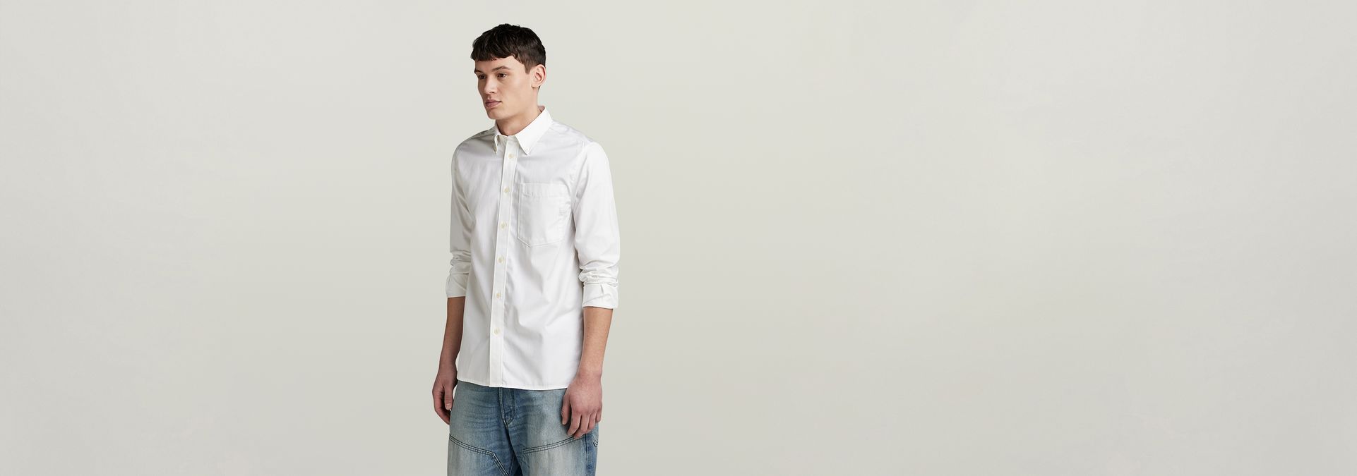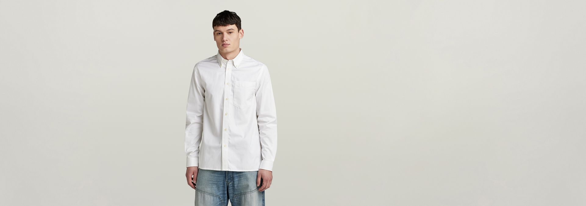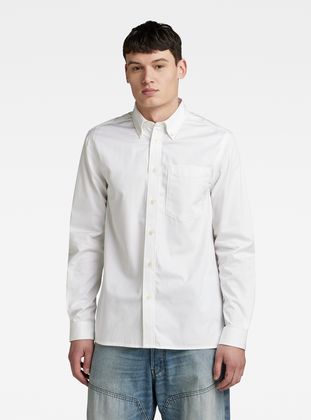 Button-down shirt One Pocket offers a straight fit with side slits. The chest pocket shows a specific shape.