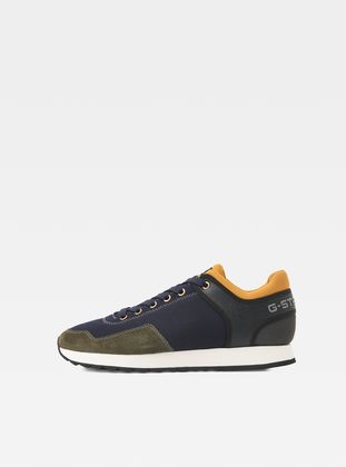 This sneaker inspired by vintage running styles features contrasting materials and a Y shaped ankle support panel. A combination of soft materials fine leather. Flat laces complete the shoe.