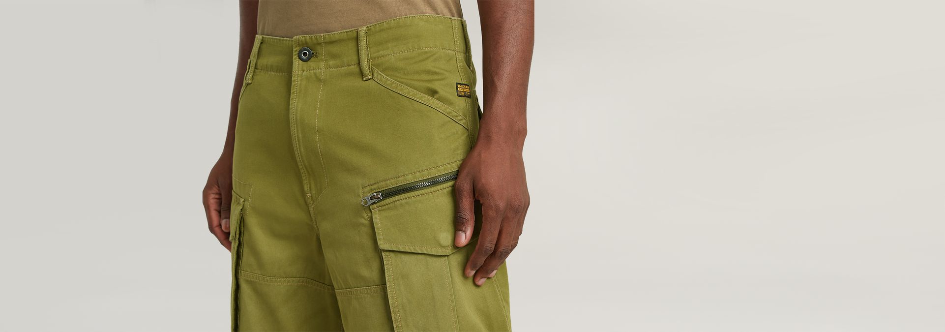 These Rovic Zip shorts show cargo pockets with an additional zipper pocket at one side. Flap pockets at the back are finished with a hidden snap button. Adjust the width of the leg as you like it by pulling the woven tape inside.