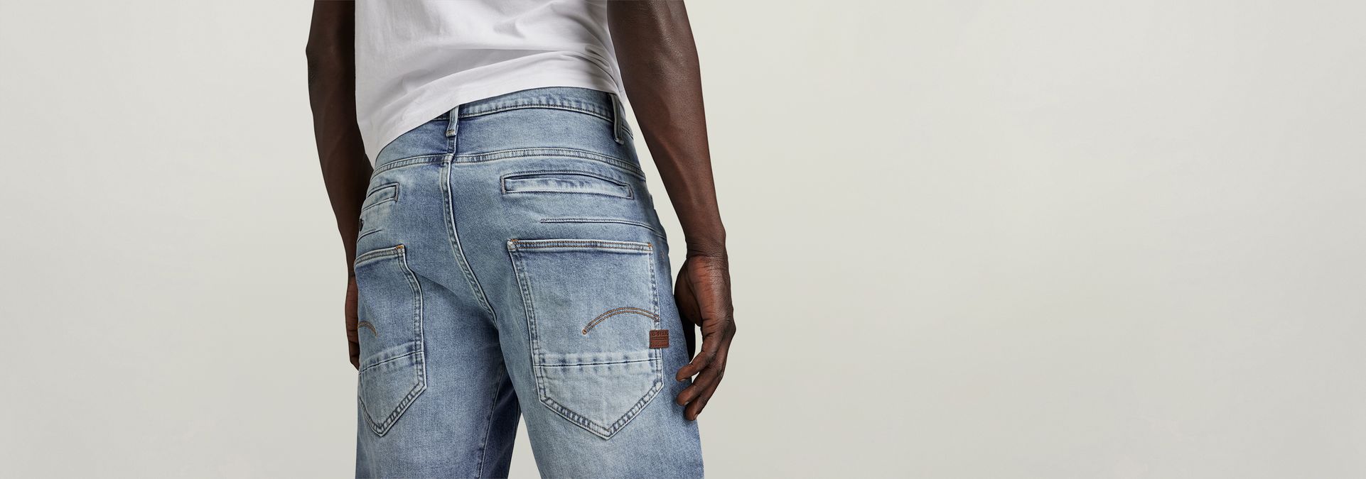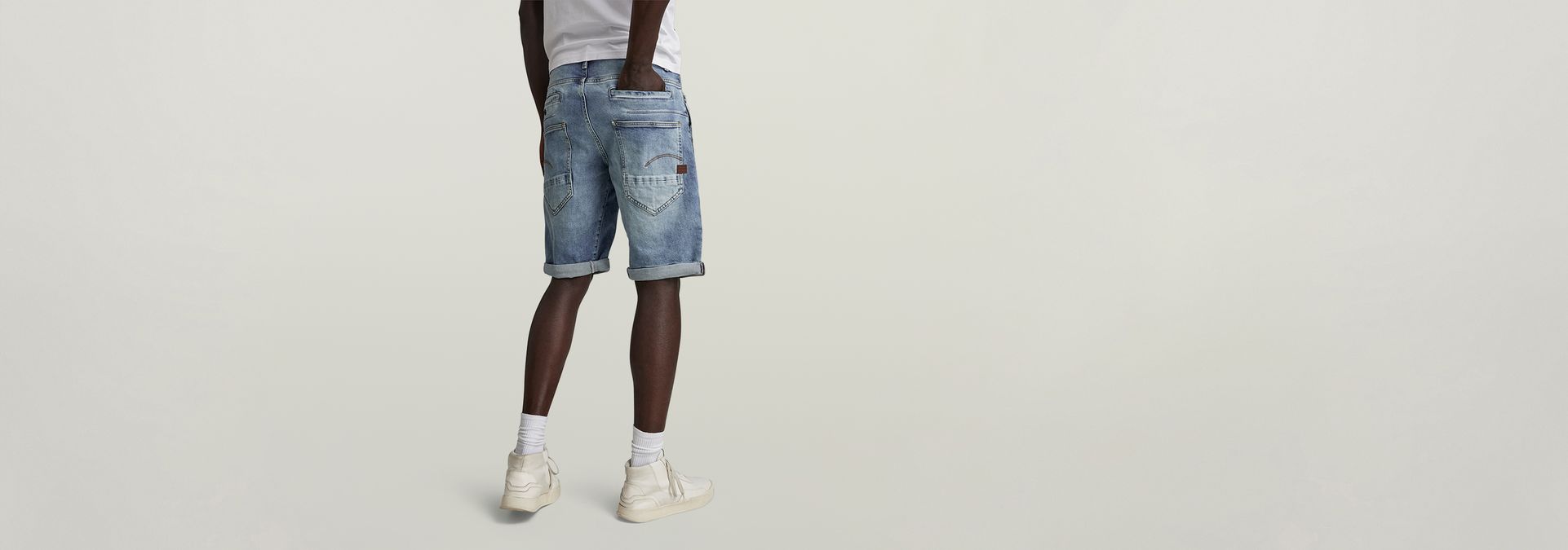 These D-Staq 3D denim shorts follow the same design features as the full length version. Featuring 9 pockets of which the back welt pockets refer to the chino.