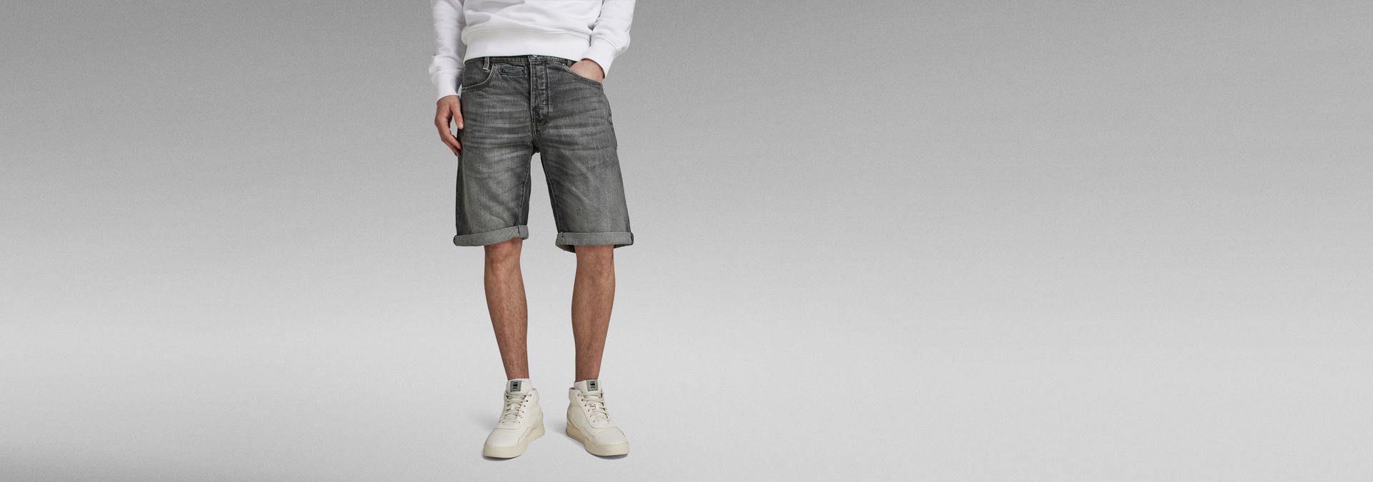 These D-Staq 3D denim shorts follow the same design features as the full length version. Featuring 9 pockets of which the back welt pockets refer to the chino.