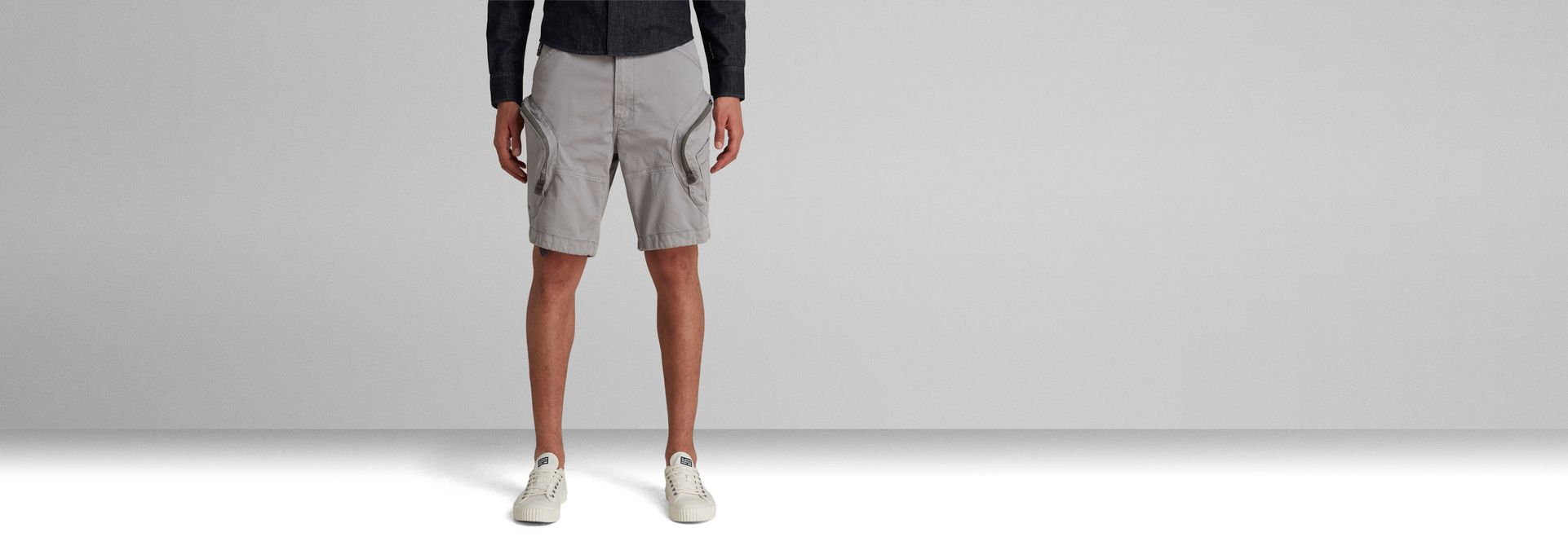 These Rovic Airforce shorts are cut in a relaxed fit. Designed with lots of detailing such as 3D thigh pockets with zippers and an additional penpocket. A hidden tape in the leg hems allow for extra volume when tightened. The back pockets close with a flap and a hidden snap button.