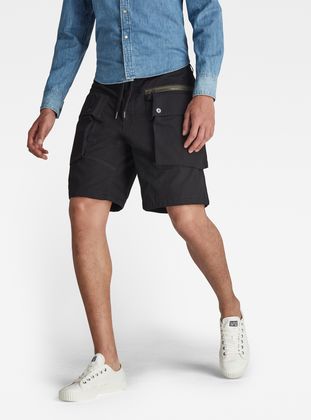 These Alpine Cargo shorts are designed in a relaxed fit, offering detailed pockets. The waistband is adjustable by the integrated drawcord. These shorts show roomy bellows pockets at the thigh. A zipper pocket is set behind one of them. Across the backside another pocket is created offering two compartments with button closures.