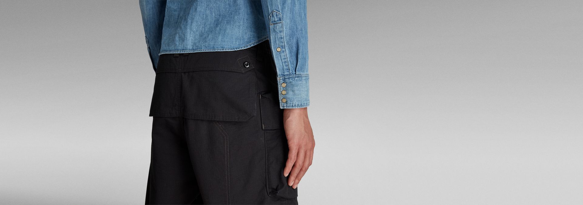 - Thigh pockets, zip pocket set behind one of them