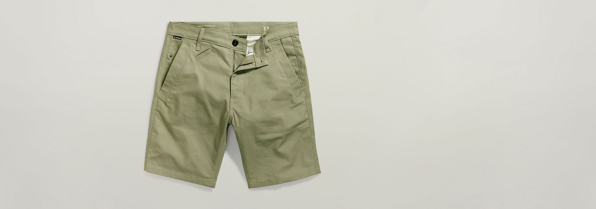 Chino shorts Bronson 2.0 offer a slim fit. The inset pockets are finished with a broad welt. One of the back pockets shows a button closure.