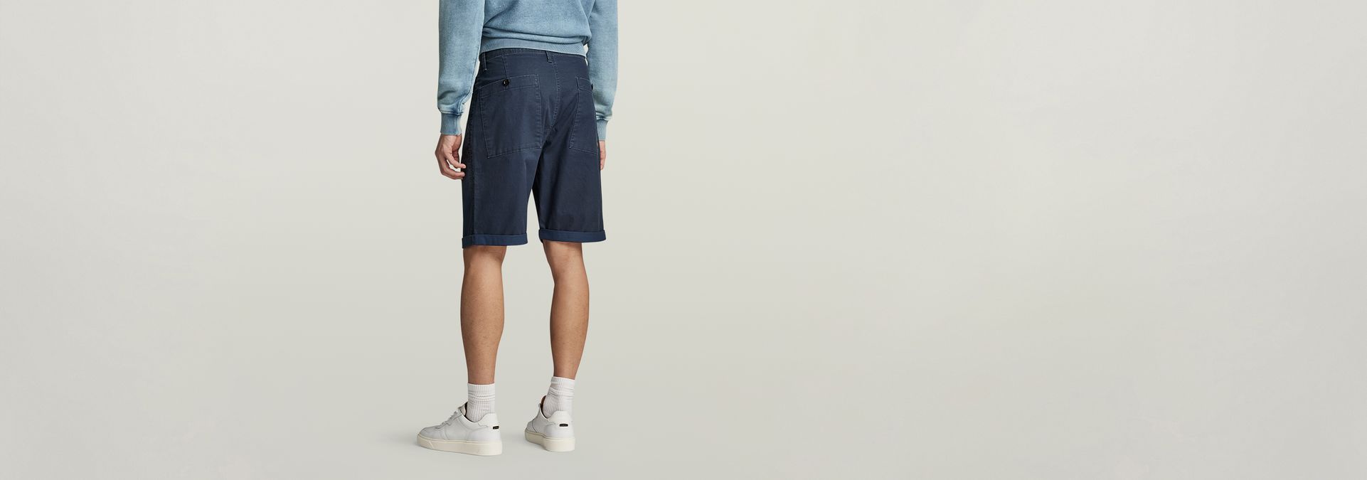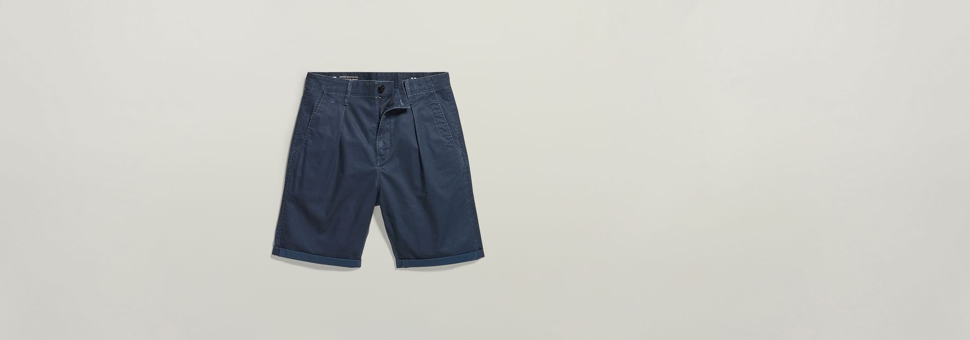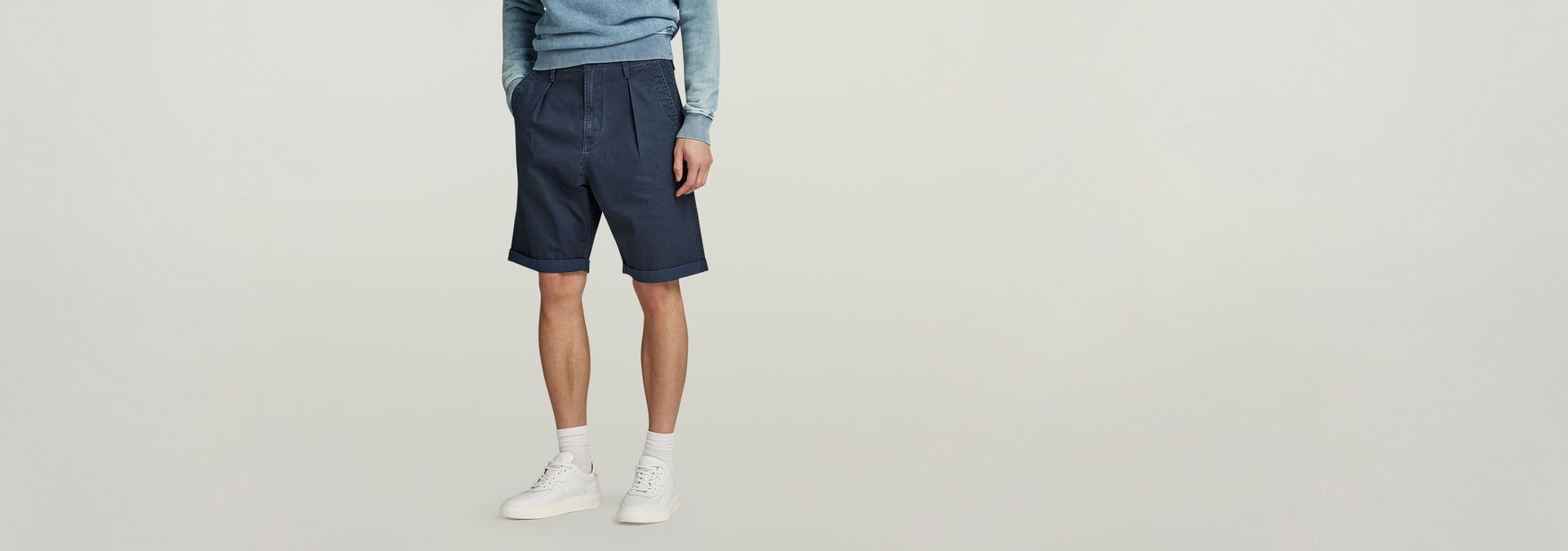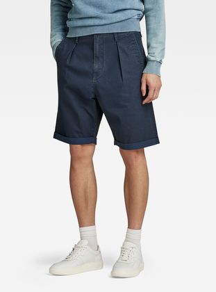 Chino shorts Pleated offer a relaxed fit. The inset pockets are cut in shape and offer an integrated coin pocket. Choose for a turn-up leg to complete the look.