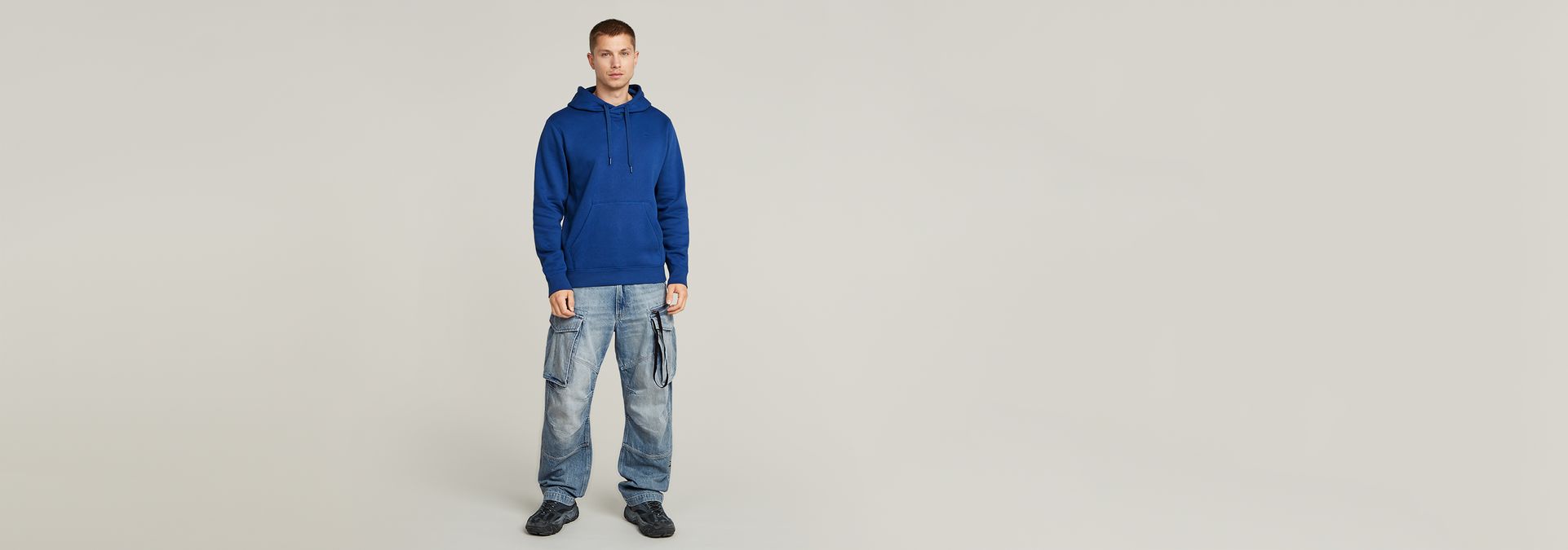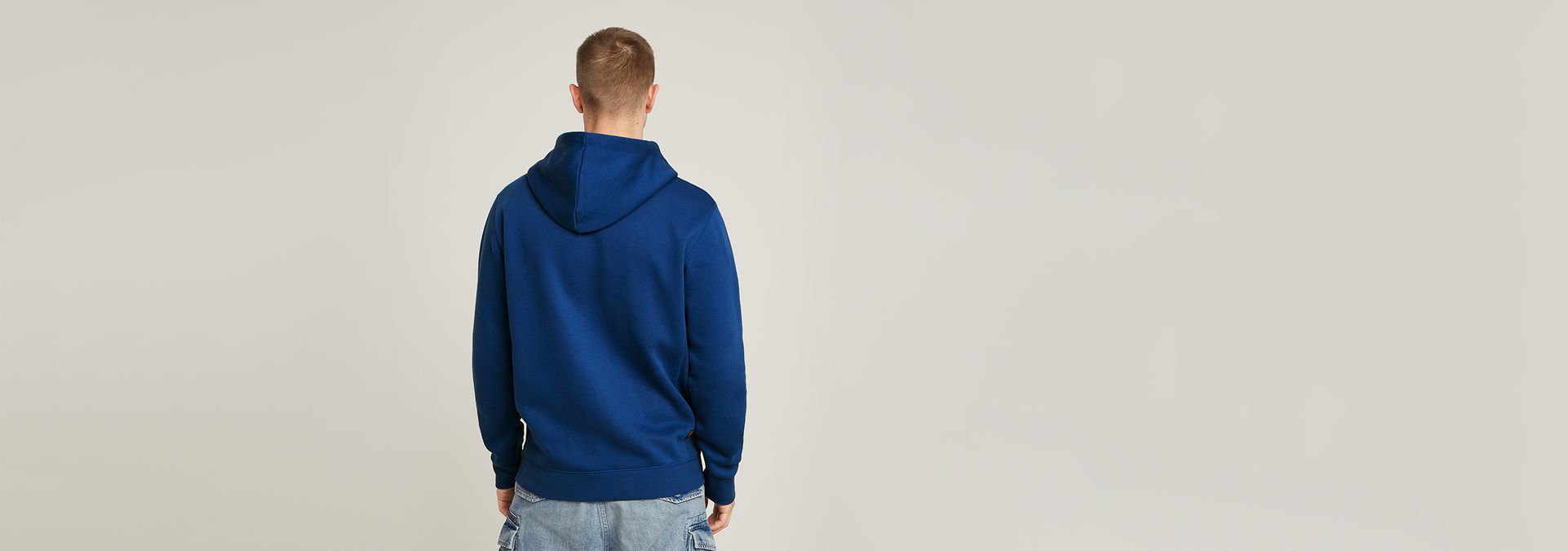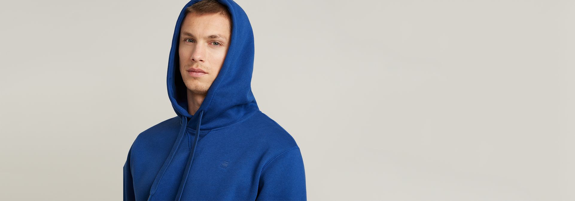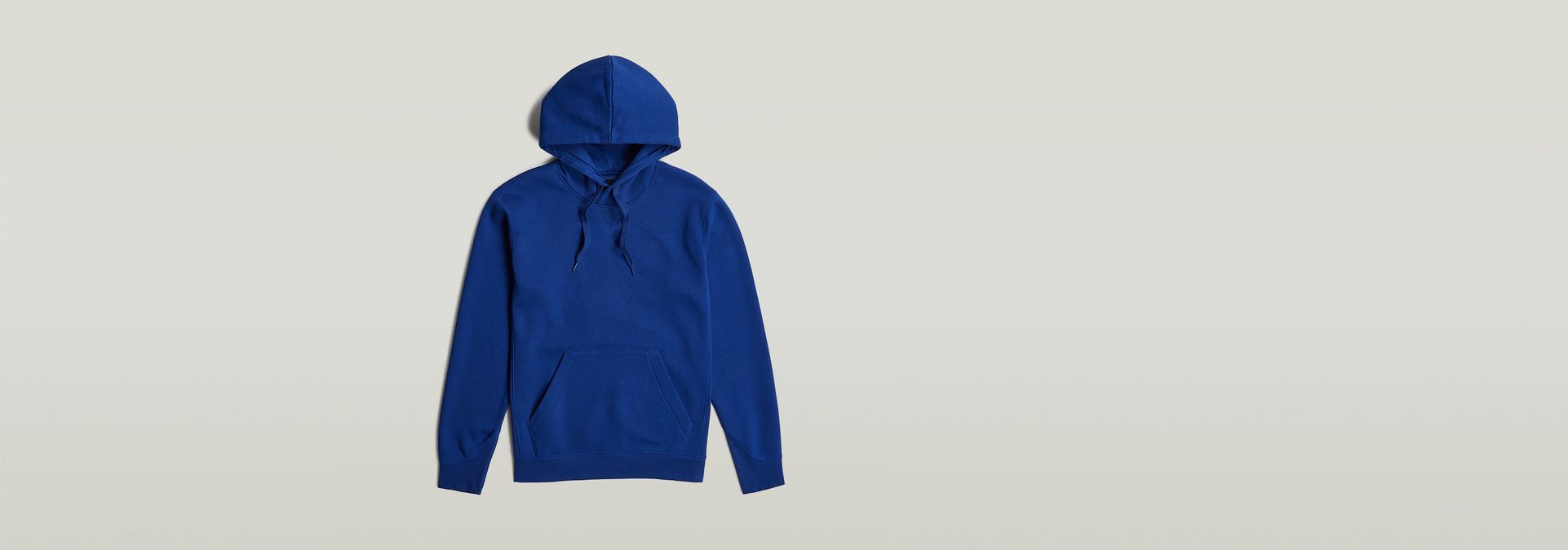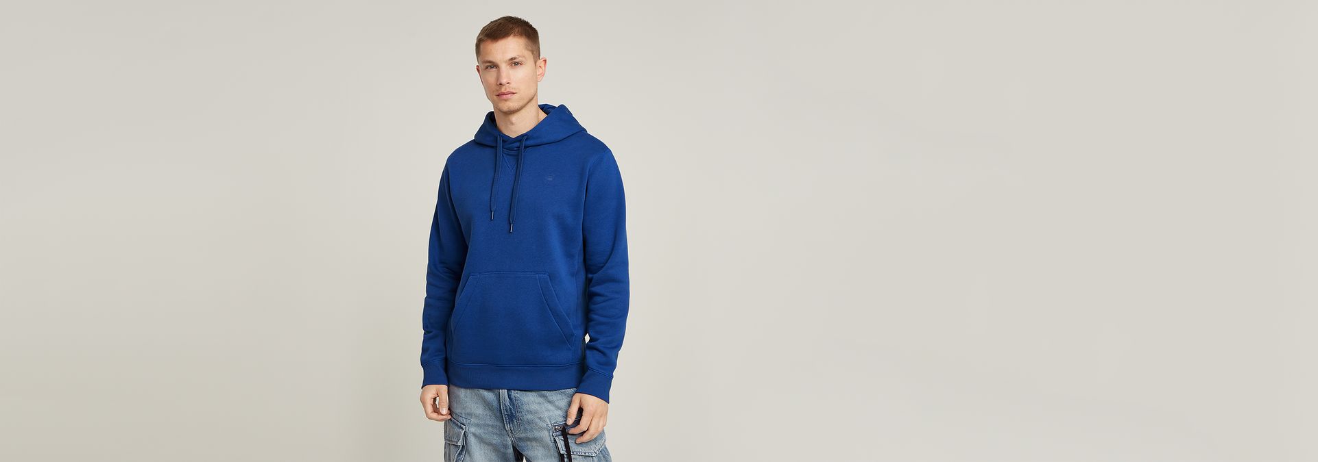 The Premium Core hoodie features a hood with a cross over construction and a ribbed inset piece. The long sleeves have a curved finish, showing a ribbed cuff underneath.