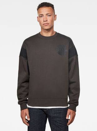 The Drein sweater offers a moto inspired print at the chest and back. Paneled sleeves are designed with a contrast inset piece. This sweater is finished with a knitted rib along the neckline, cuffs and waist. A woven G-Star Originals label is placed at the lower side seam to complete it.