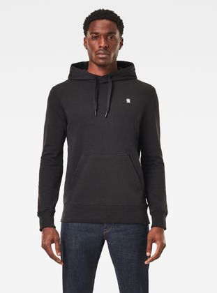 TheGraw Core hooded sweater features a kangaroo pocket and a lined hood with ribbed inset and drawstrings. Long sleeves have a curved finish, showing a ribbed cuff underneath. A subtle G-Star RAW logo is added to the lower sleeve.