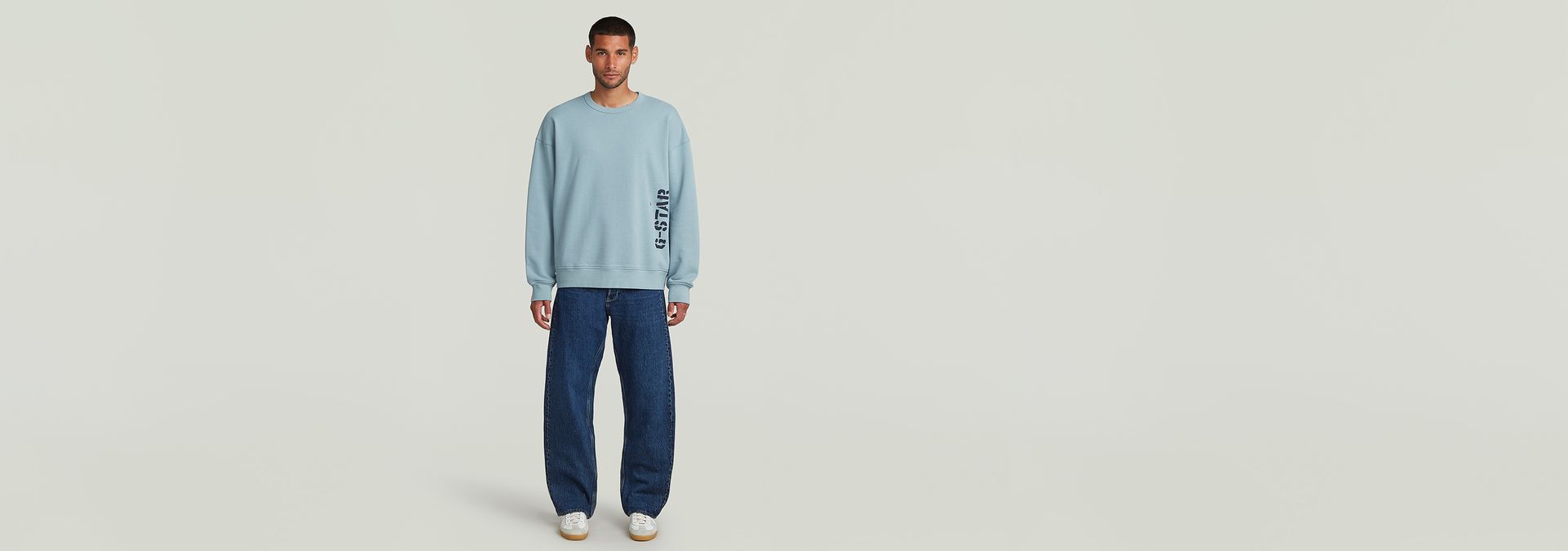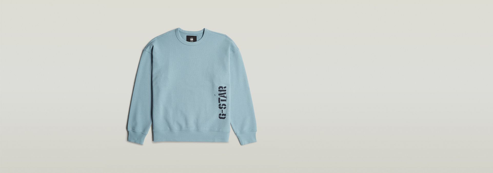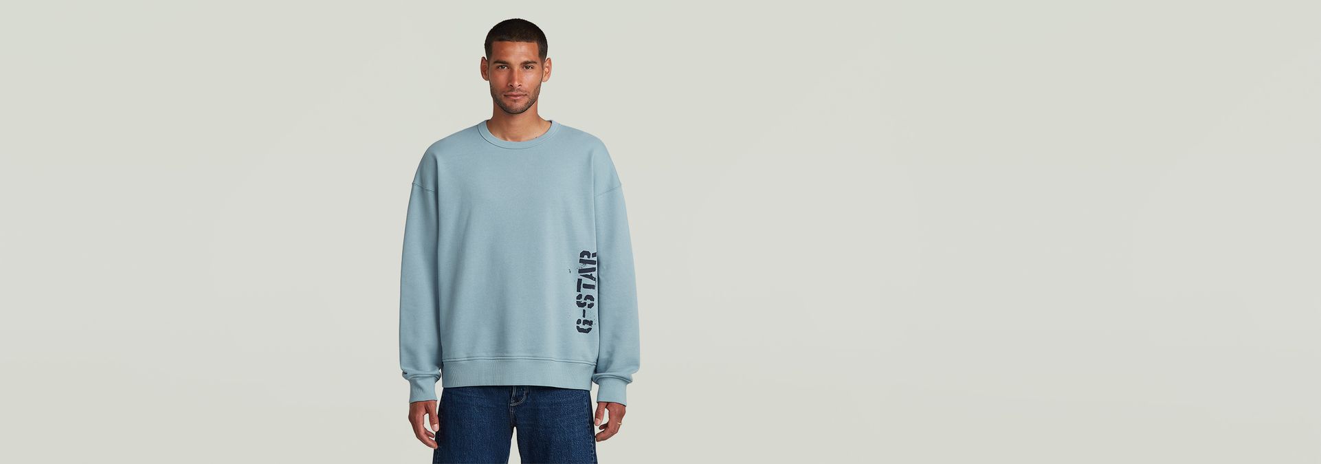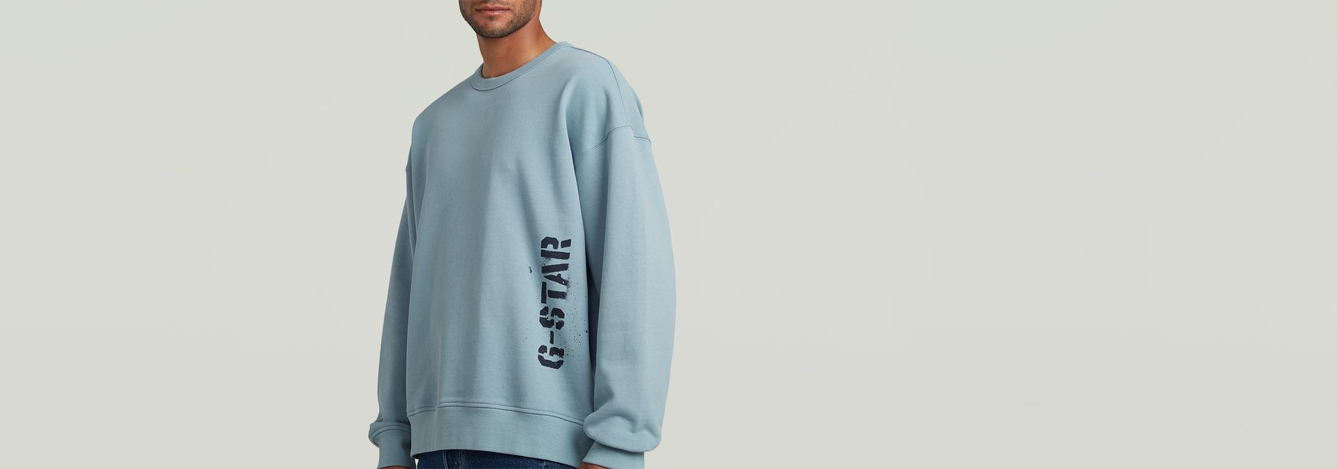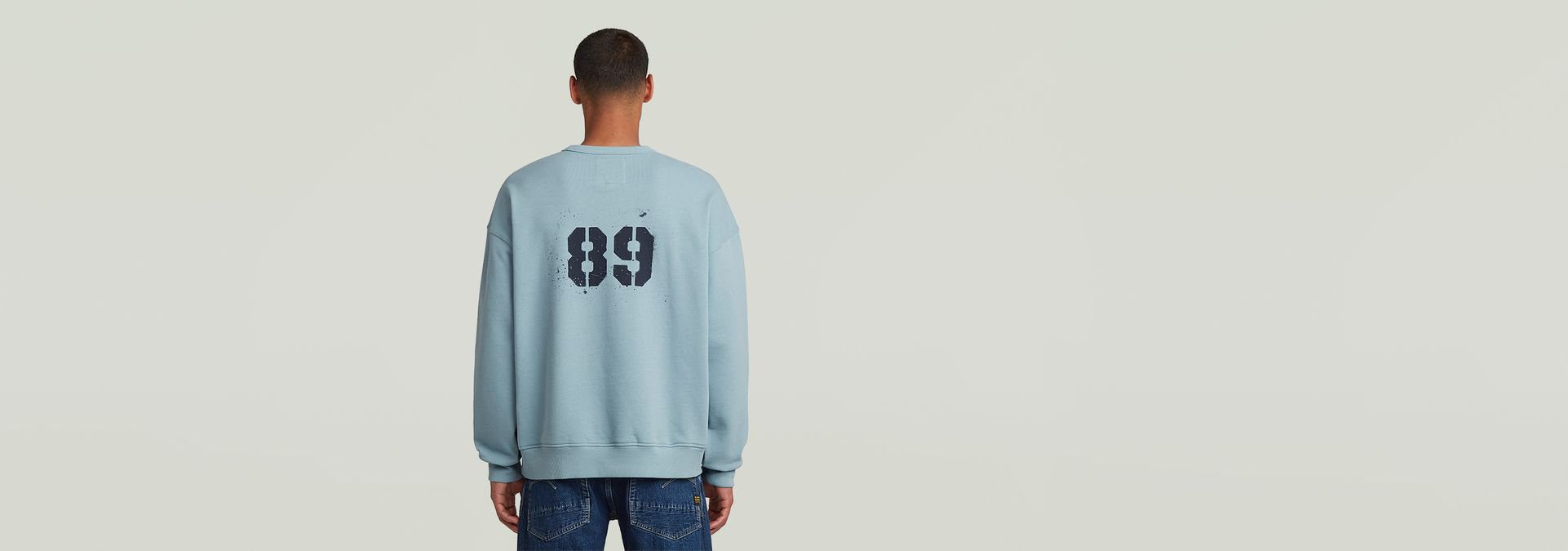 The Sprayed 89 Loose Sweater features a relaxed fit with a round neck and graphic details.