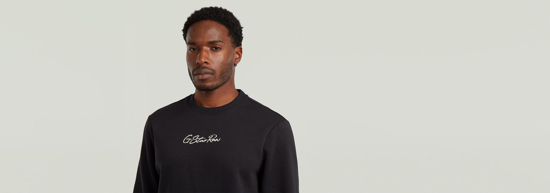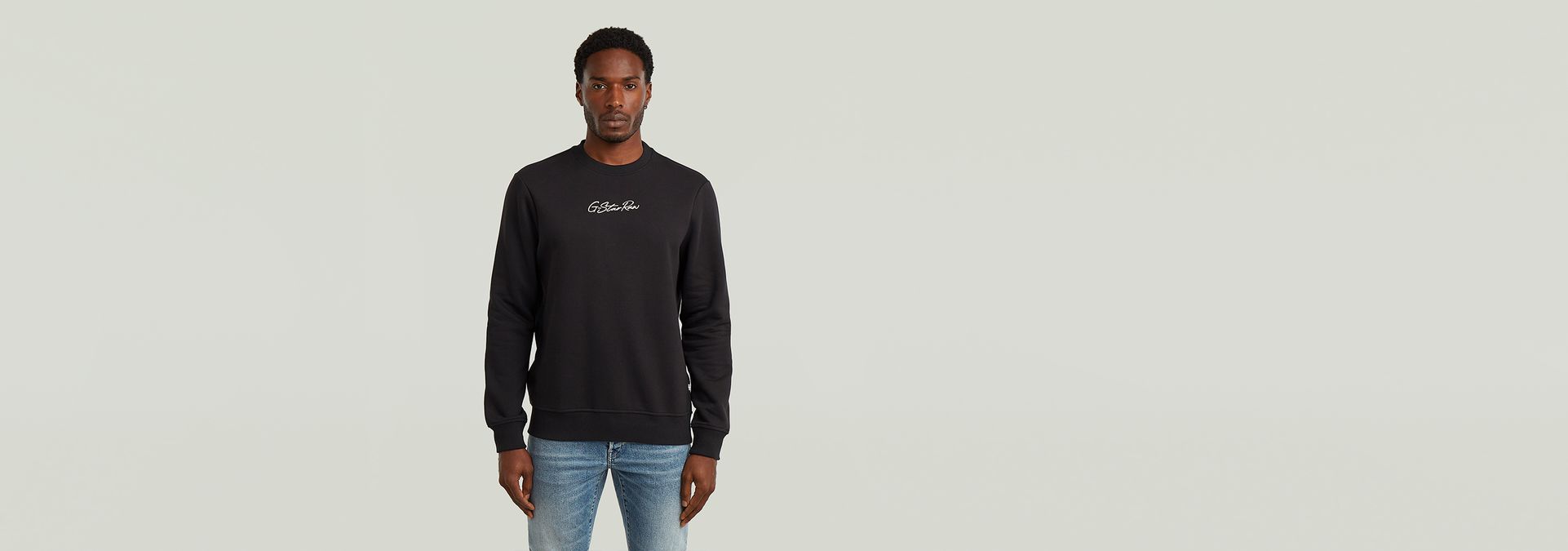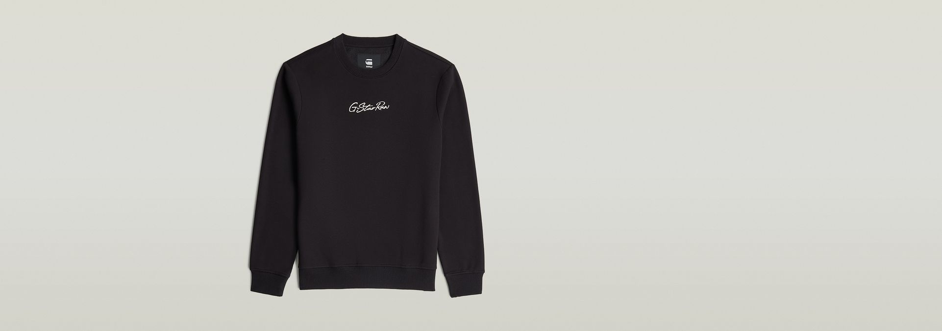 The Autograph Sweater offers a classic round neck design with a heavy weight feel, perfect for cooler days.