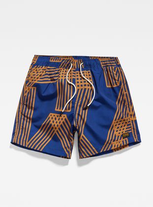 Swim shorts Dirik Allover feature an all over graphic printed design. These shorts offer an elastic waistband with an incorporated drawcord. Side seam pockets are combined with a slim welt pocket at the back side. Inside, a mesh lining adds support. The woven G-Star Originals label at the lower side seam completes it.