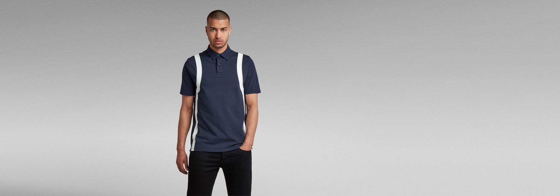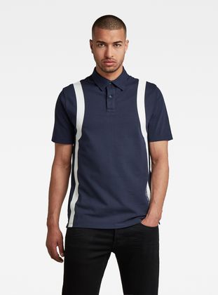 Printed stripes are placed along the sides of this polo, where a graphic print is added to the lower front. This jersey polo offers a double button closure and short sleeves. The back is slightly extended for an easy tuck in when preferred.